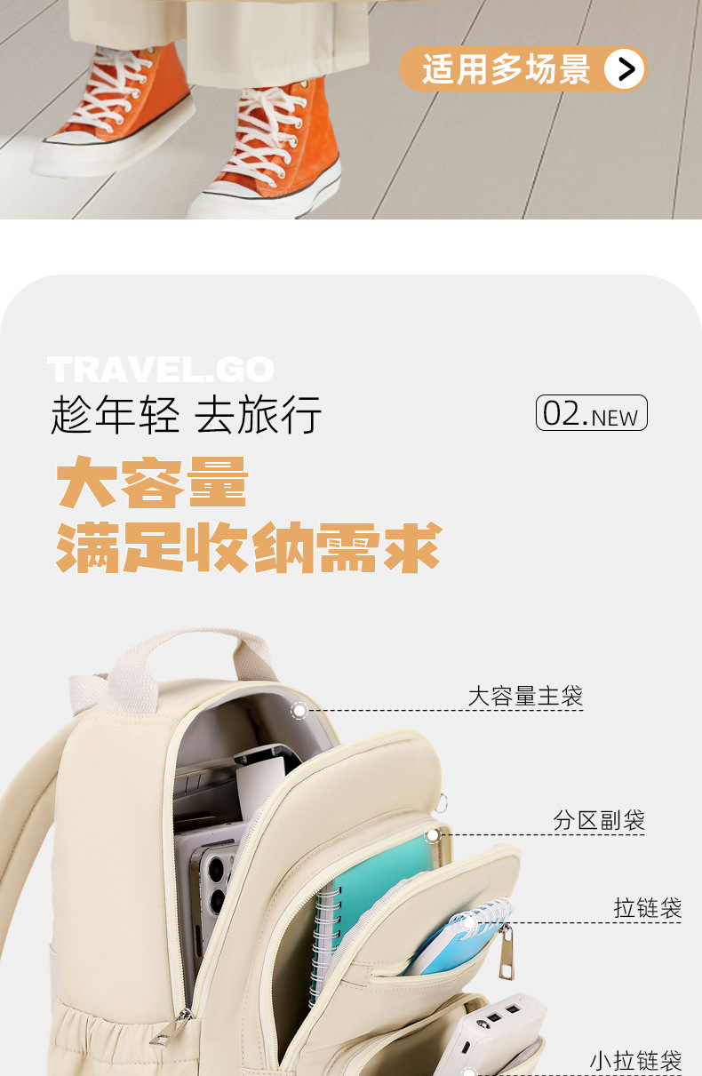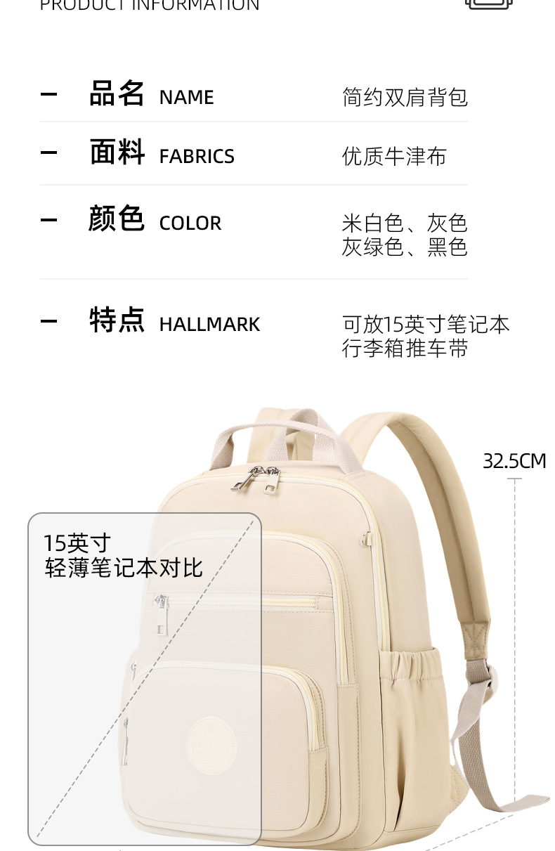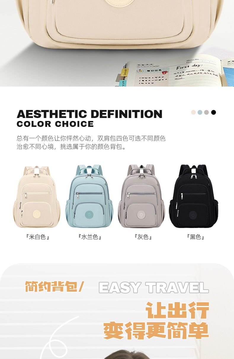 Mochila impermeable de gran capacidad para mujer, nueva colección 2025, venta al por mayor del fabricante, mochila de doble hombro de color sólido, bolso de gran capacidad con múltiples bolsillos
