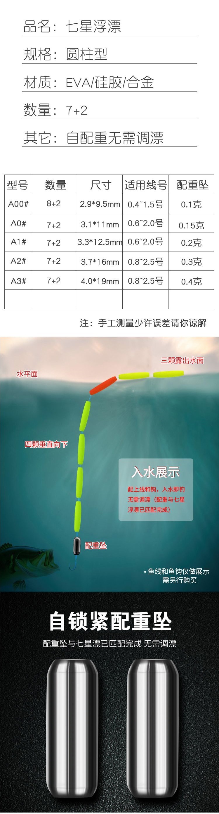 Tres cartas siete estrellas flotante conjunto de alta sensibilidad flotante tradicional grano grano agujero de pesca flotante carpa flotante contrapeso fábrica flotante