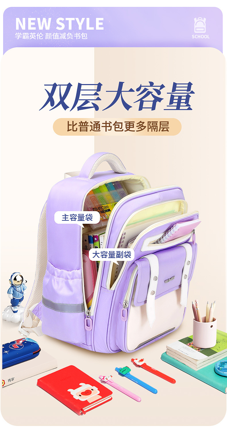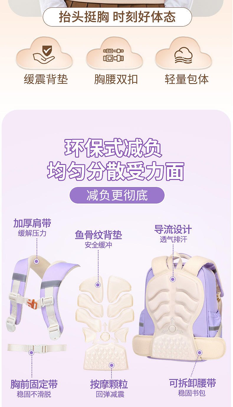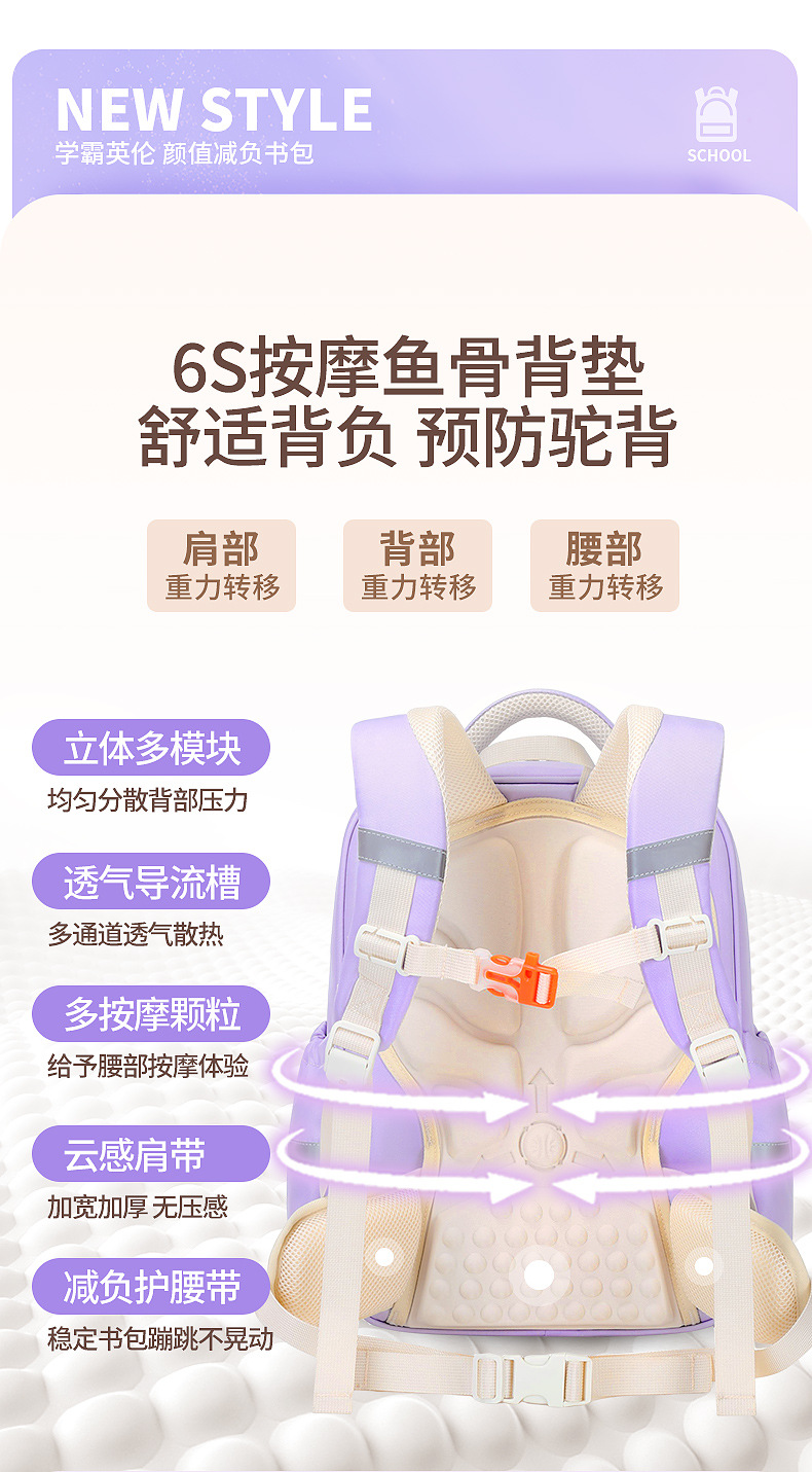 Mochila de nube ligera para estudiantes de primaria, mochila ultraligera, resistente al desgaste, niños y niñas de grado 1-3-6