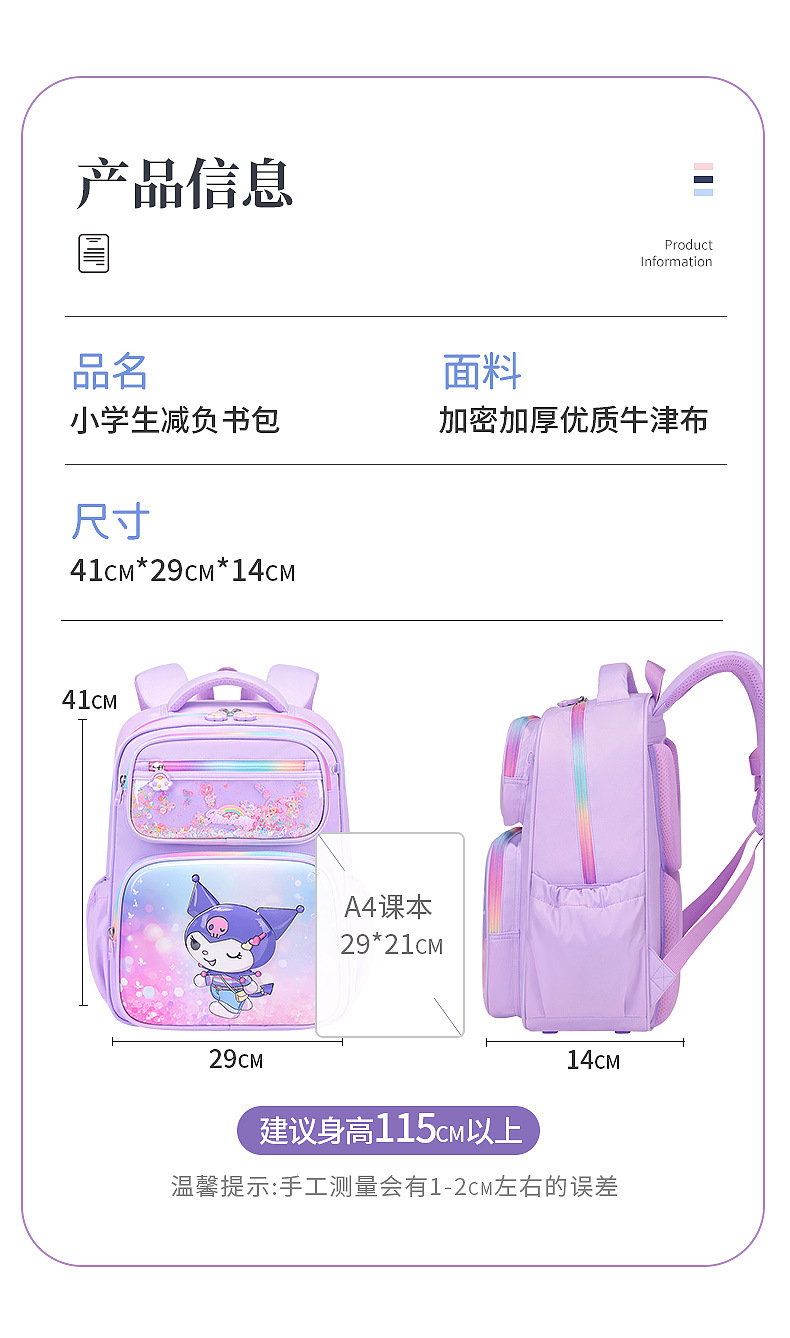 2025 nueva mochila escolar infantil Kulomi niñas estudiantes de primaria de grado uno, dos y tres niñas perros yu Gui