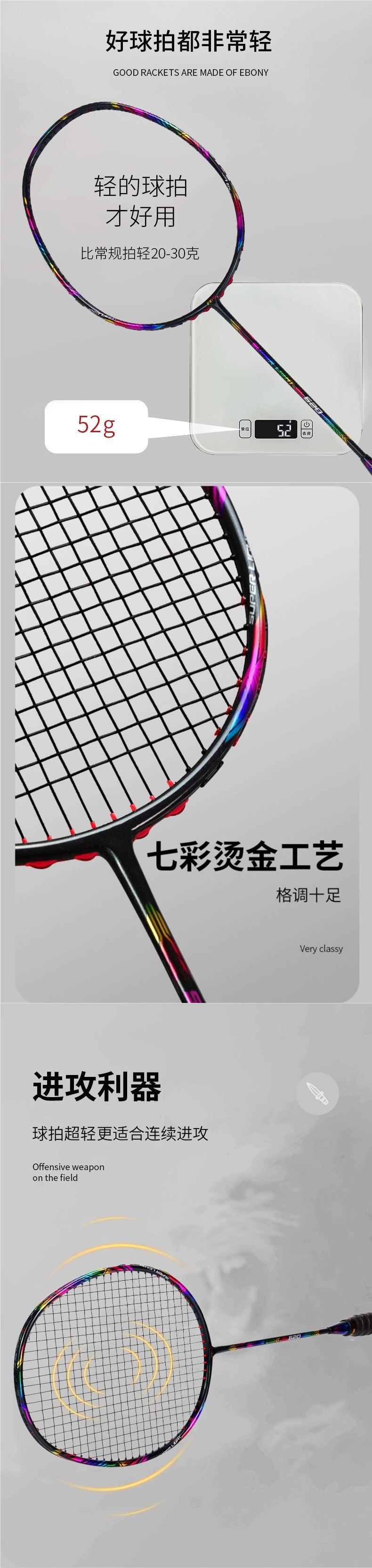 50g 10U raqueta de bádminton de carbono ultra ligero 8U un solo golpe entrenamiento profesional de fibra de carbono ofensivo comercio exterior