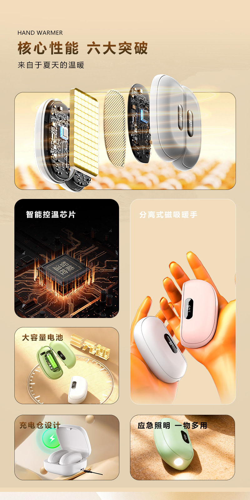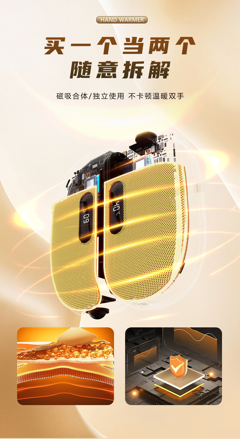 2025 nueva antorcha calentadora de absorción magnética, antorcha portátil dividida creativa, compartimento de carga USB, antorcha calentadora