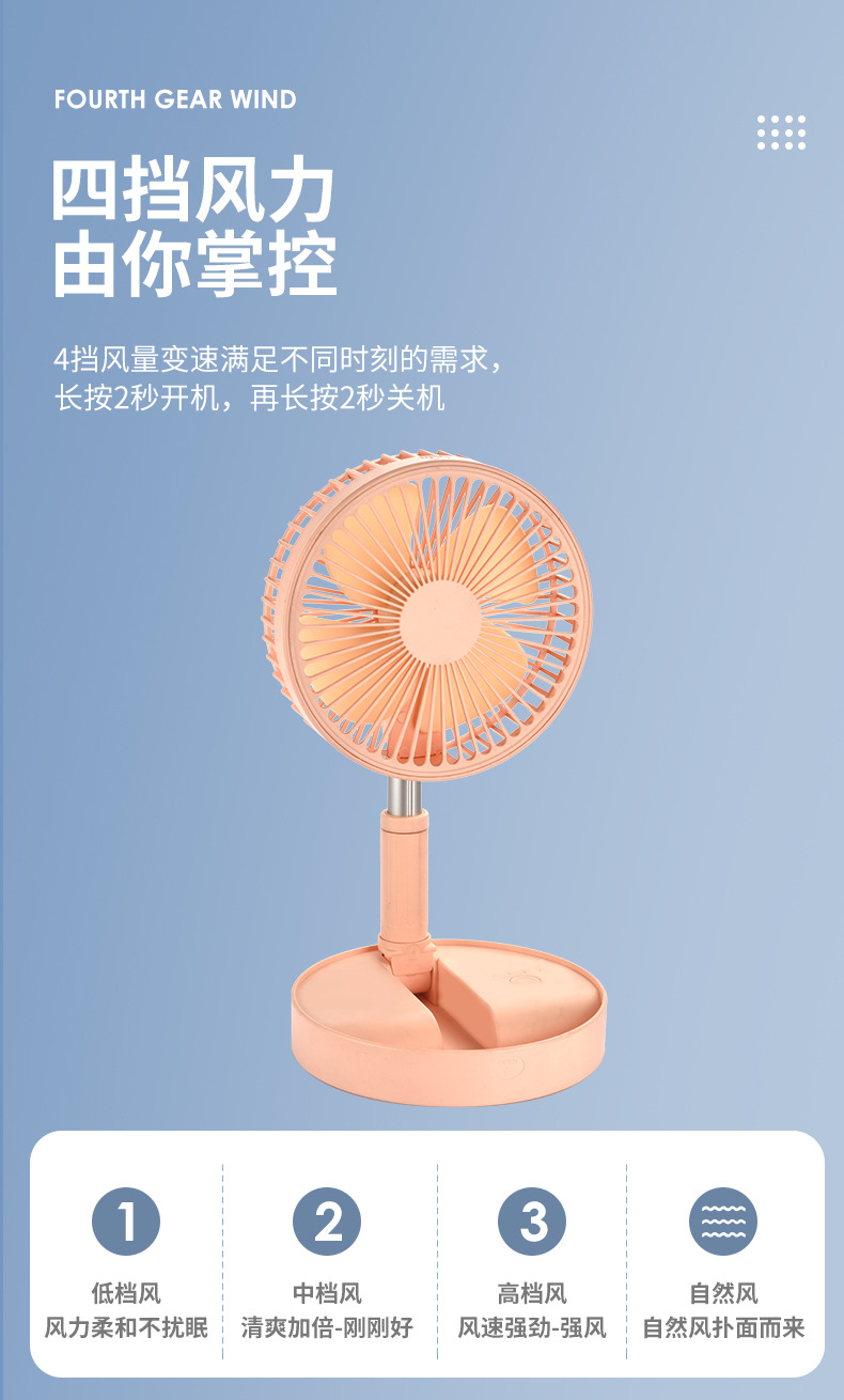 Ventilador eléctrico doméstico plegable telescópico de pie, miniventilador de escritorio USB portátil de carga de viento alto y larga duración