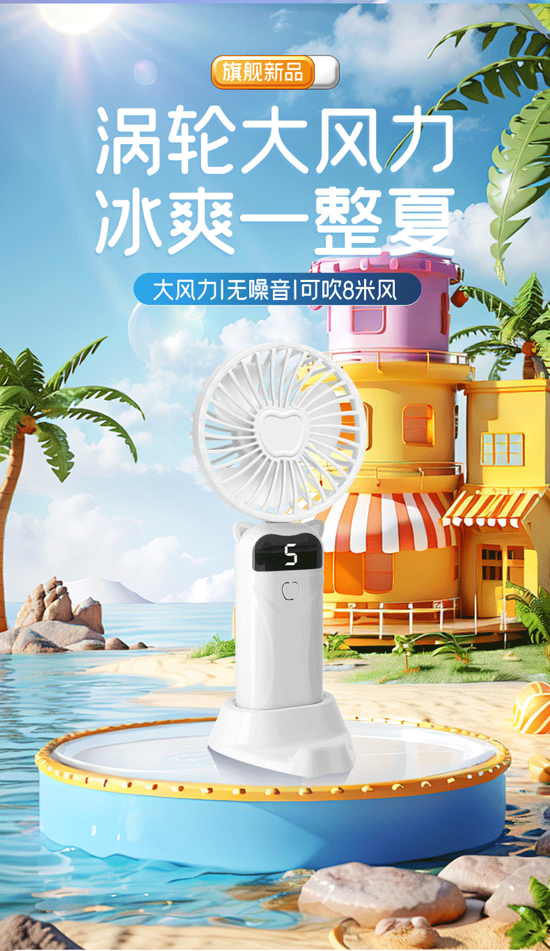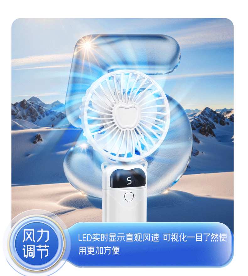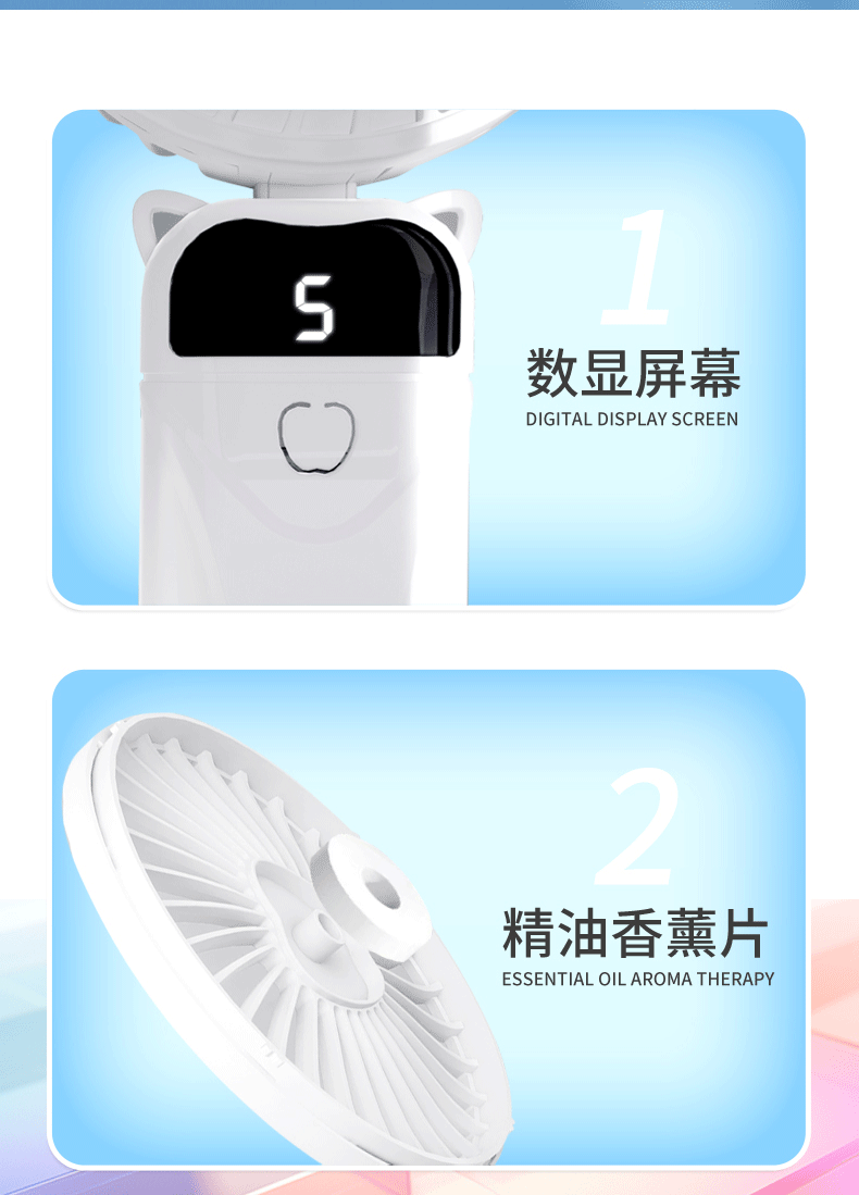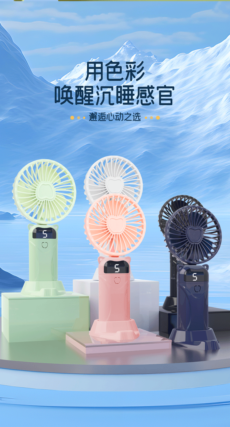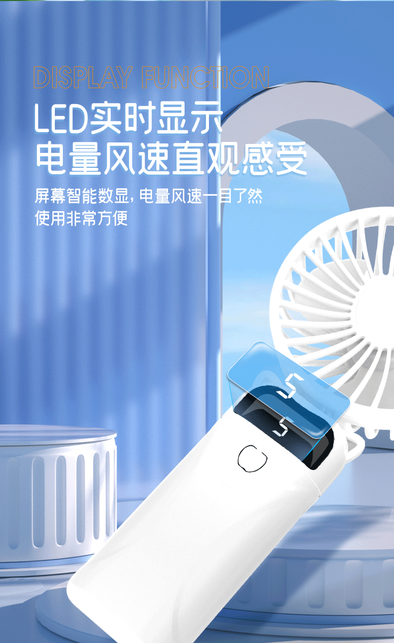 Nuevo ventilador de mano, mini ventilador plegable, escritorio portátil, ventilador pequeño, pantalla digital, oficina al por mayor al aire libre