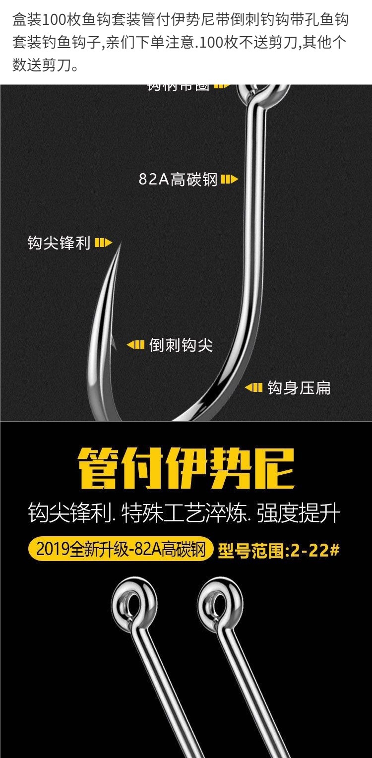 Tubo de Issene con agujeros de anzuelo de pesca conjunto mixto con caja de púas conjunto de mezcla de agujeros redondos fábrica de comercio de anzuelo de pesca