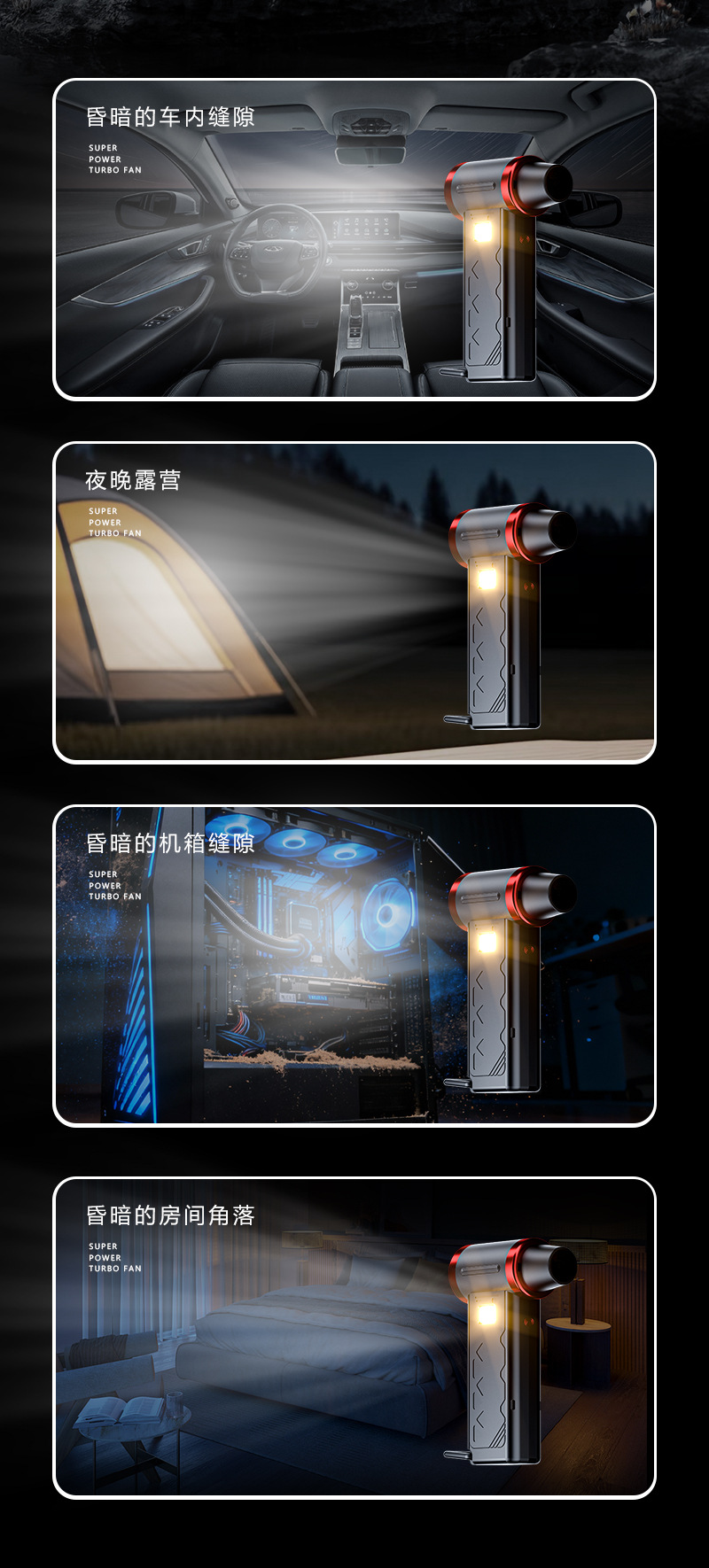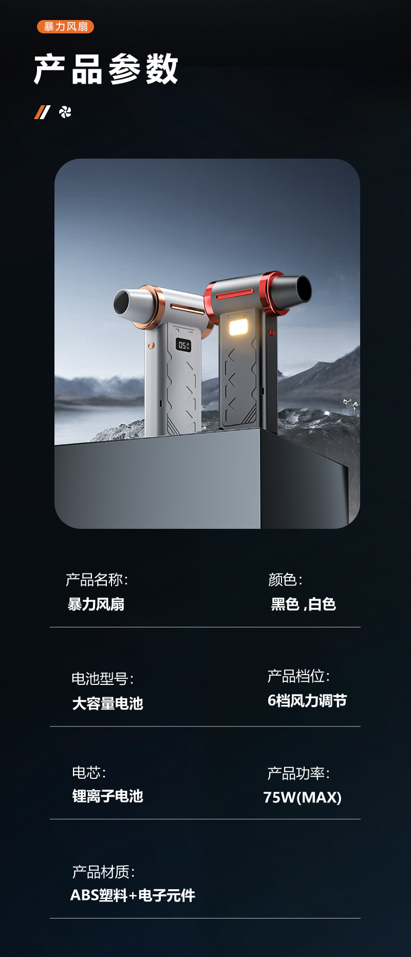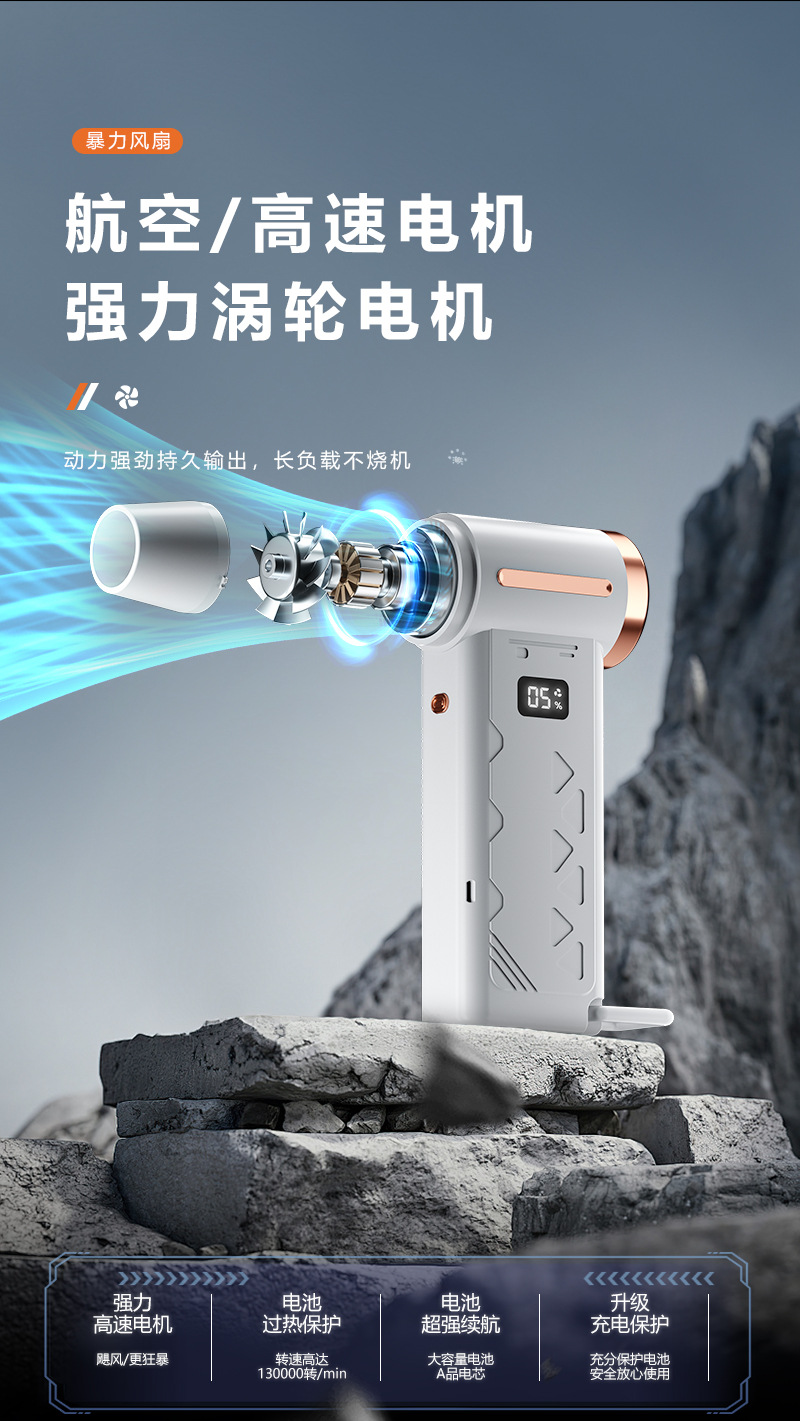 Ventilador portátil de turbina a reacción de un botón violento de alta velocidad 6 martillo de ventanas de viento ajustable