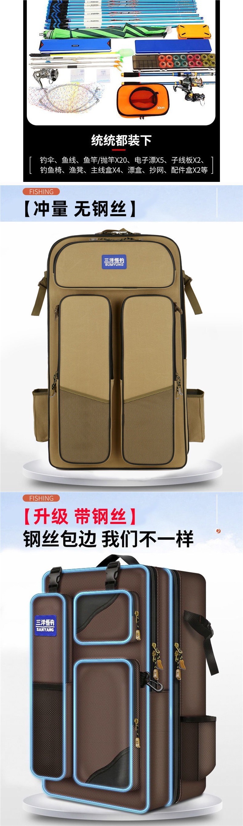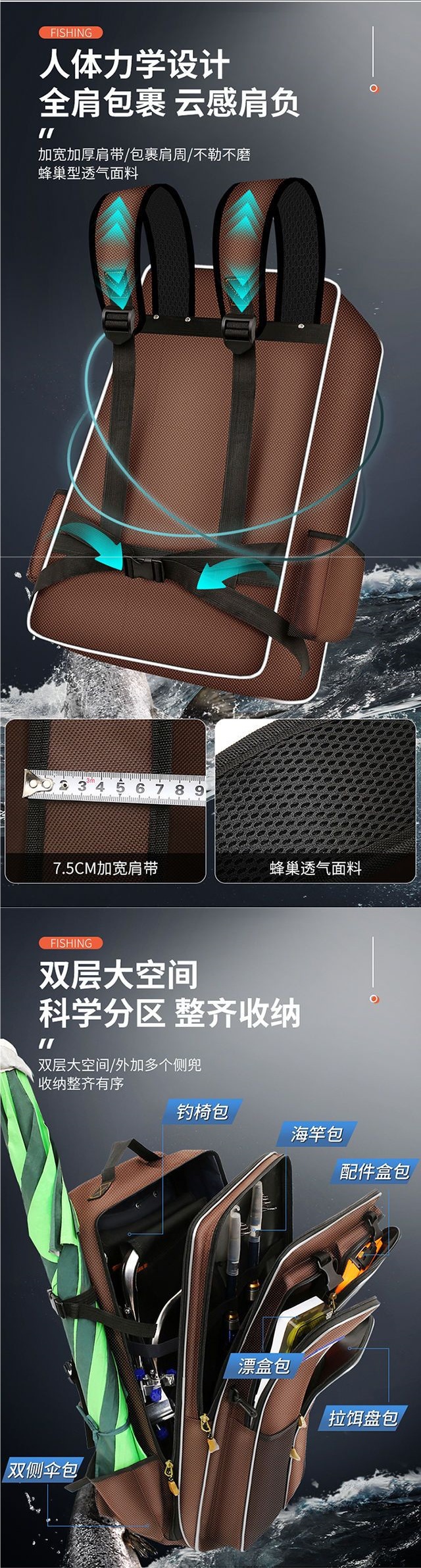 Mochila de pescar, mochila de hombro, mochila de pesca multifuncional, bolsa de pescado de doble capa, bolsa de caña de pesca, fábrica de artículos de pesca, comercio al por mayor