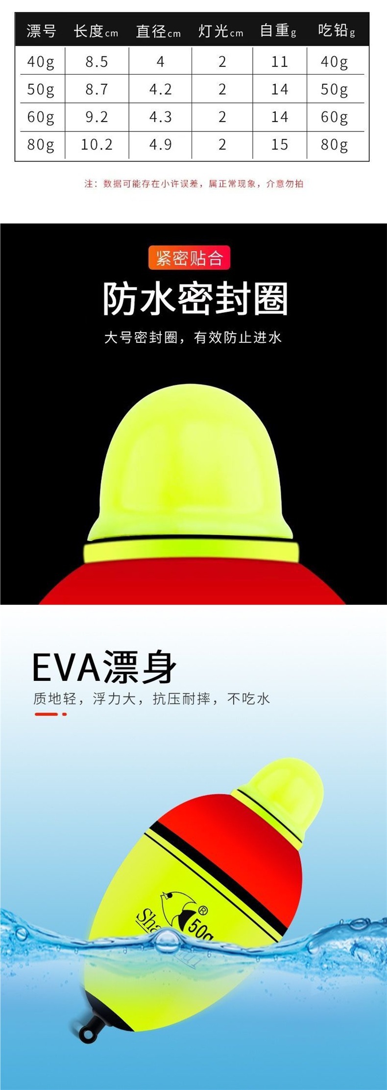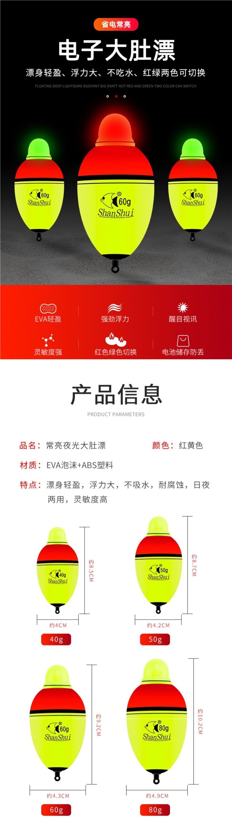 EVA bicolor flotador eléctrico flotante pesca de pesca super llamativa gran flotabilidad puerto flotante de gran abdomen flotante