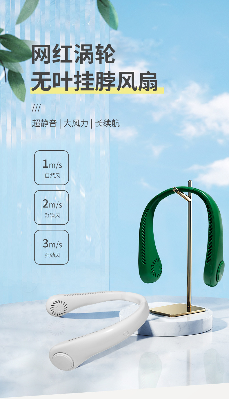 Transfronterizo mini portátil cuello ventilador sin paletas turbina larga duración fábrica al por mayor cuello USB pequeño ventilador