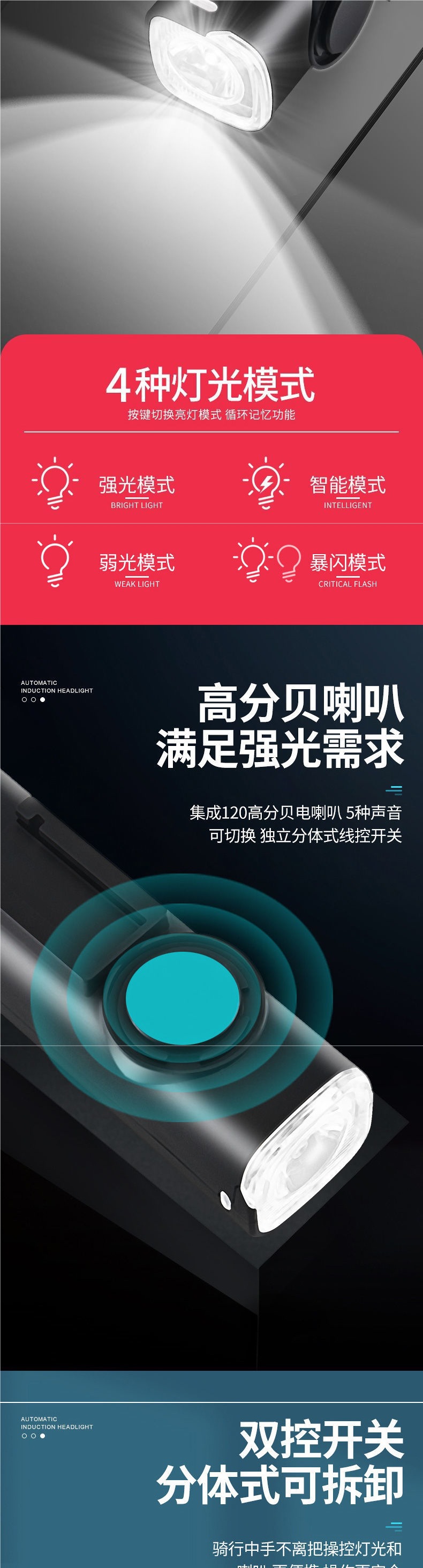 faro de bicicleta inteligente carga linterna de luz alta iluminación de bicicleta de montaña de noche luces de montaña luces de montaña luces de buzina de equipos de bicicleta
