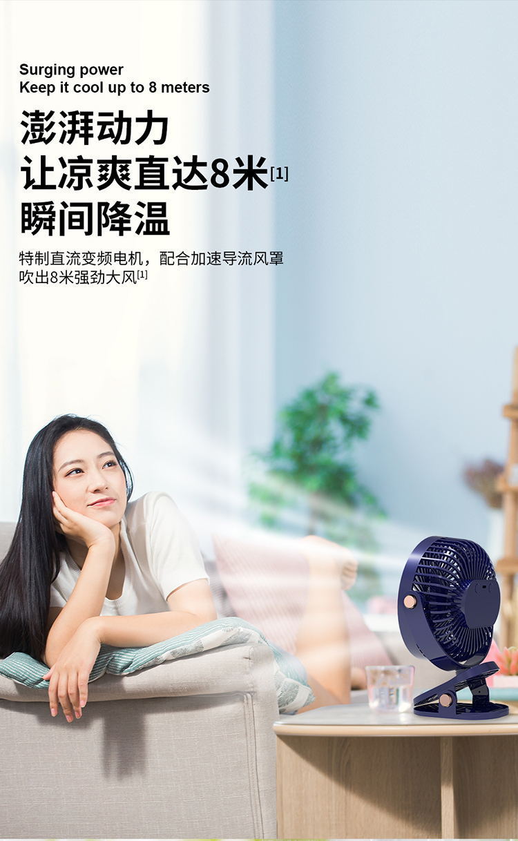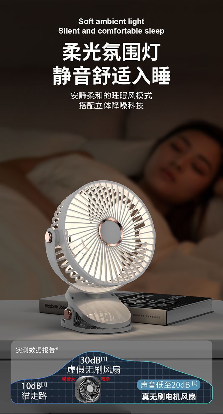 Ventilador de clip multifuncional transfronterizo de 6 pulgadas, batería de larga duración, ventilador de clip luminoso de escritorio de dormitorio de gran viento USB