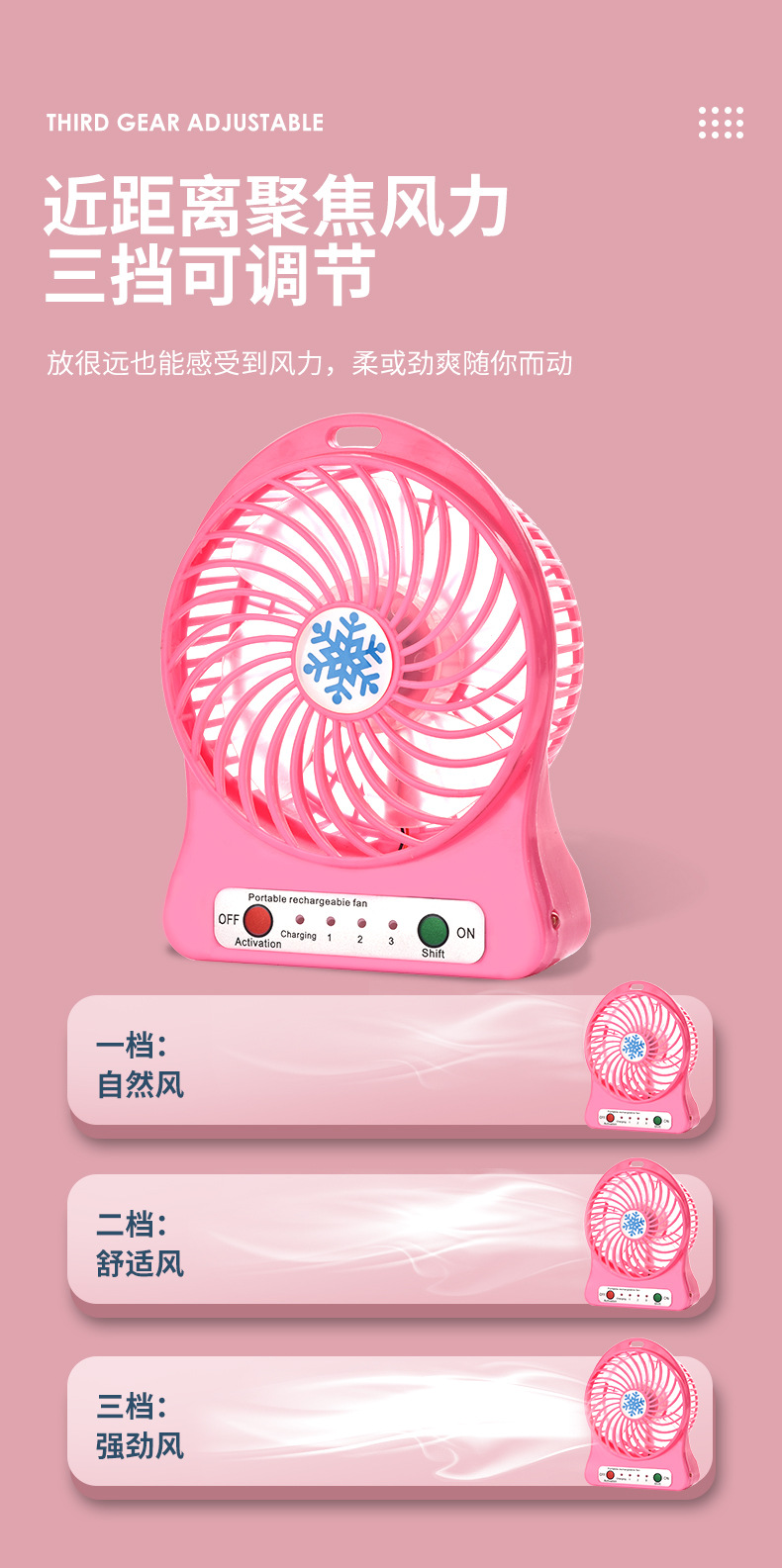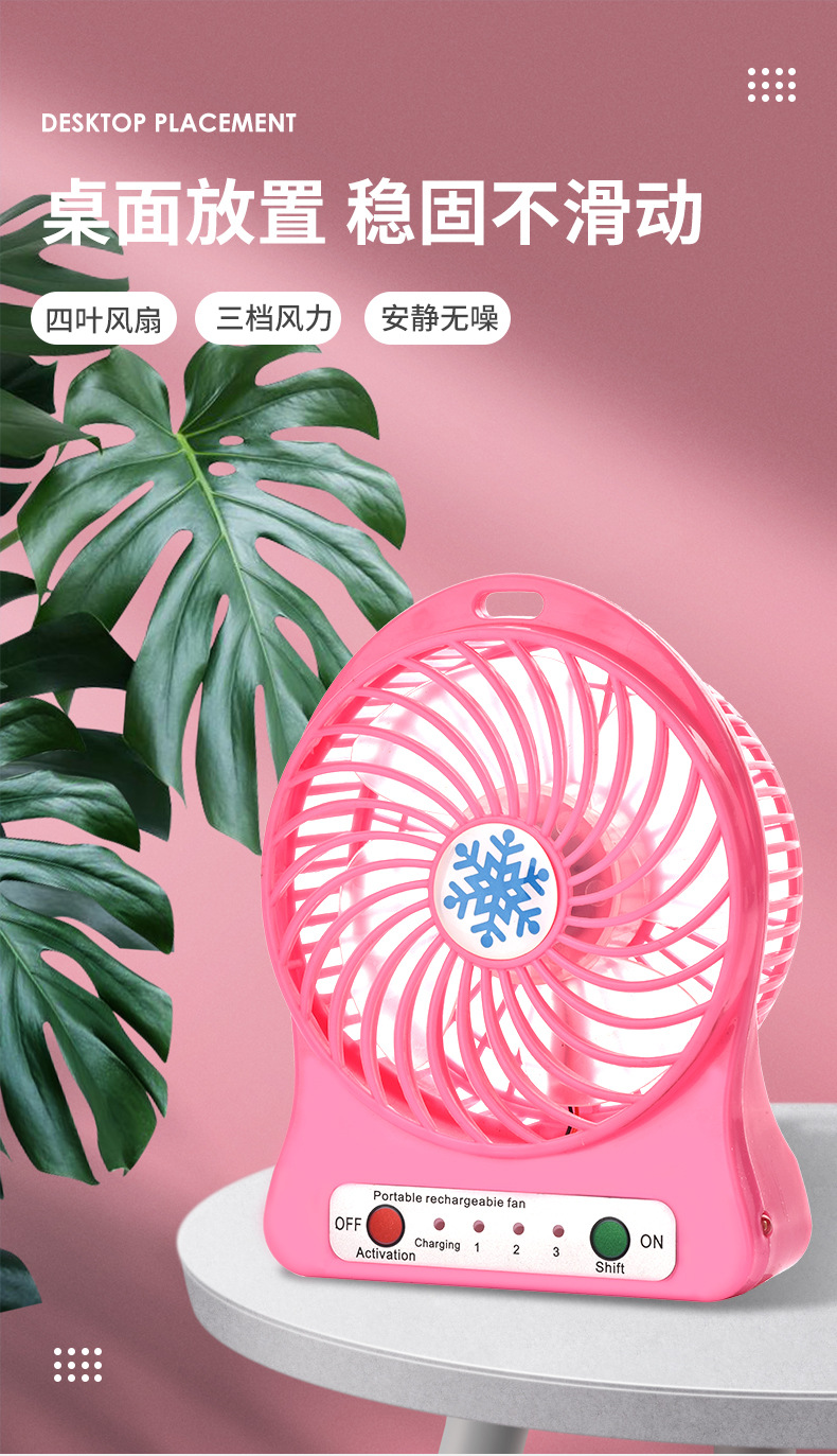 Nuevo copo de nieve banana USB portátil ventilador de escritorio recargable LED mini regalo al por mayor pequeño ventilador en stock