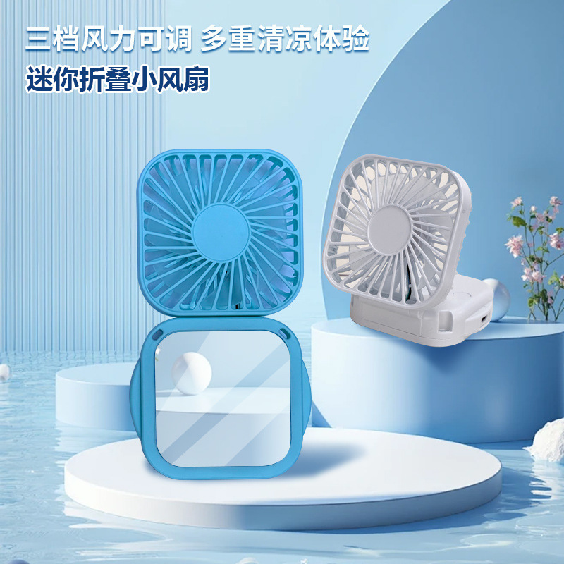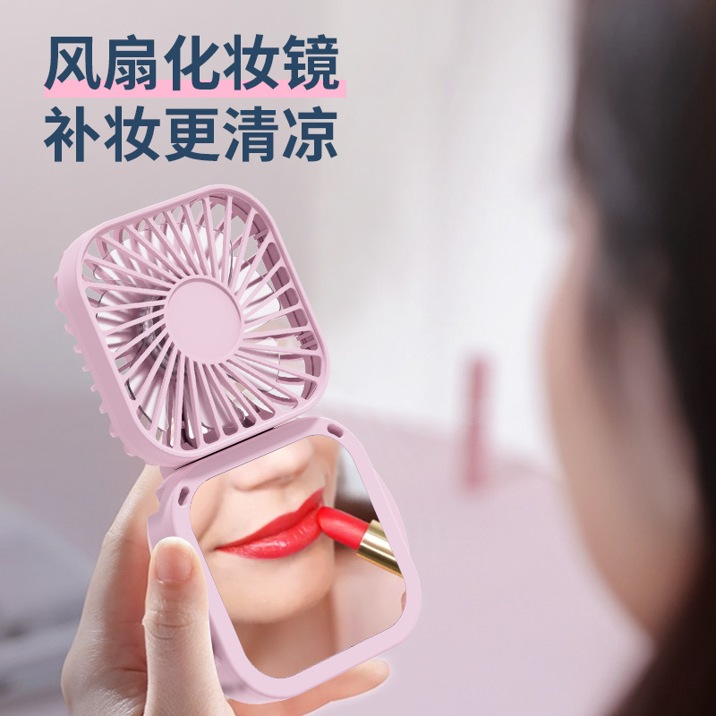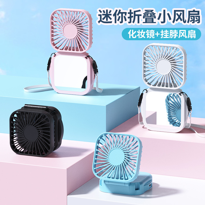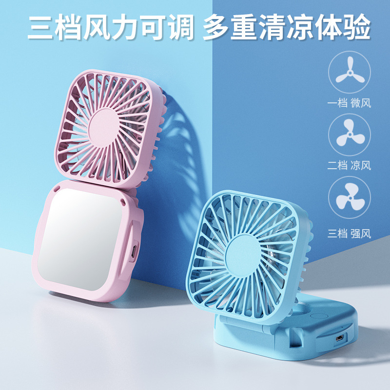 Cordón transfronterizo plegable con espejo pequeño ventilador oficina al aire libre portátil usb recargable ventilador de escritorio