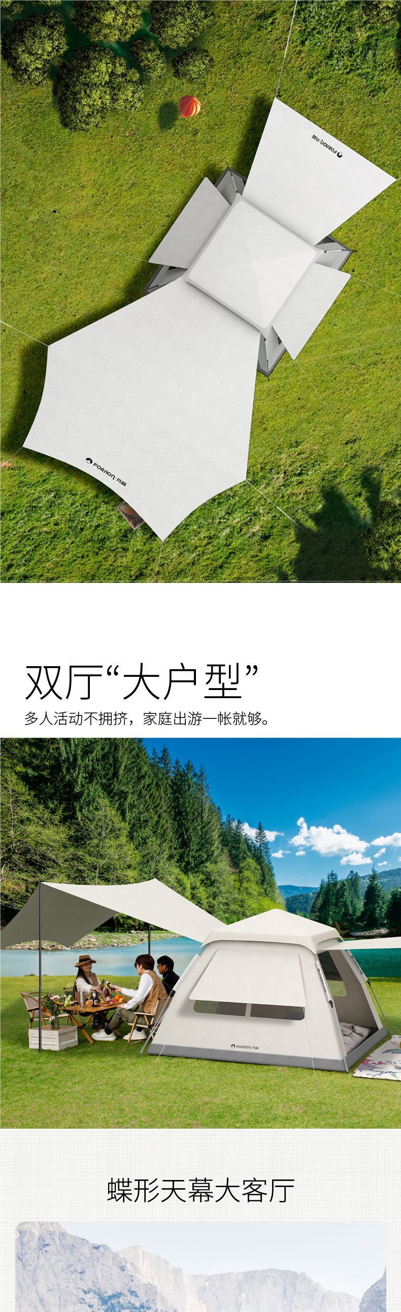 Camping al aire libre tienda de campaña dos en uno portátil sin construir sombra de sol de la familia fábrica de comercio al por mayor