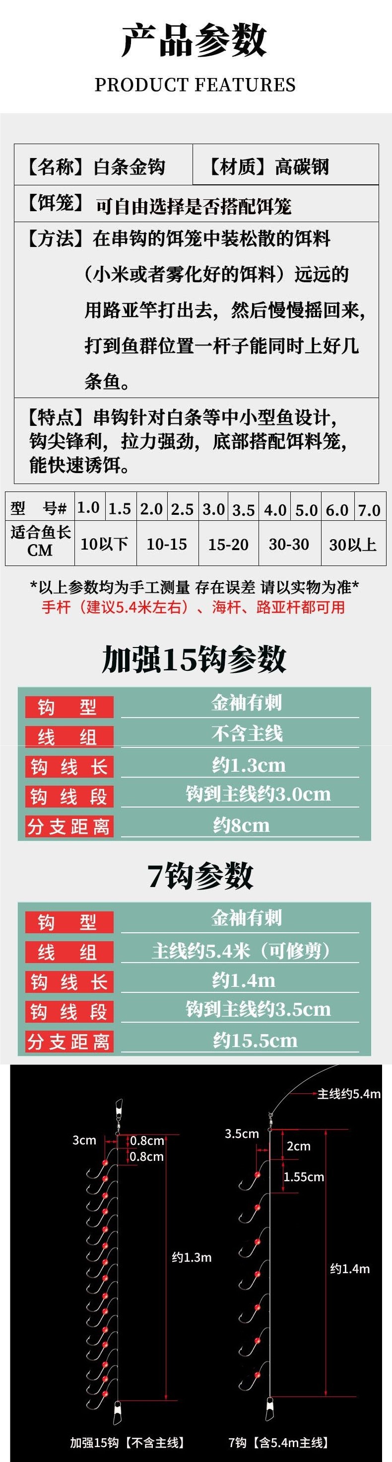 Grupo de línea de gancho de cuerda de barra blanca, grupo de gancho de oro de siete estrellas, grupo de gancho de oro de luz blanca, gancho de jaula de gancho de barra blanca, fábrica de gancho de pesca especial