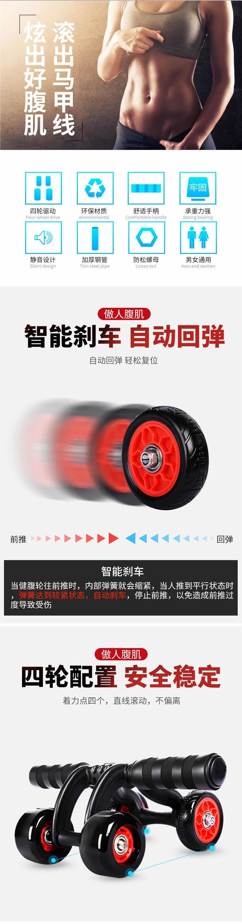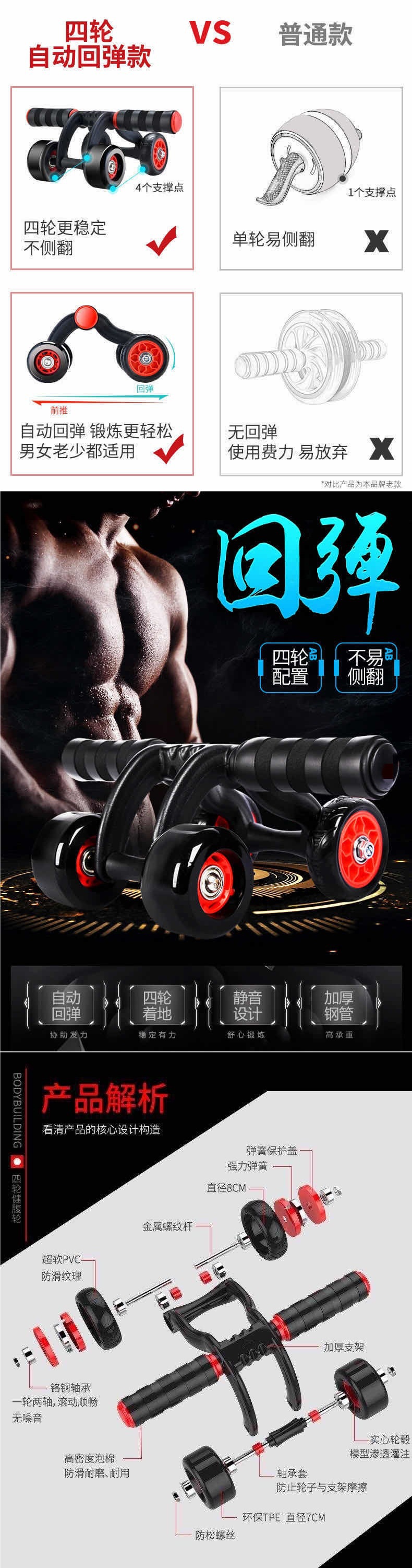 Automático rebote de cuatro ruedas abdominales rodillos abdominales rodillos equipos deportivos hombres y mujeres abdominales domésticos abdominales comercio exterior