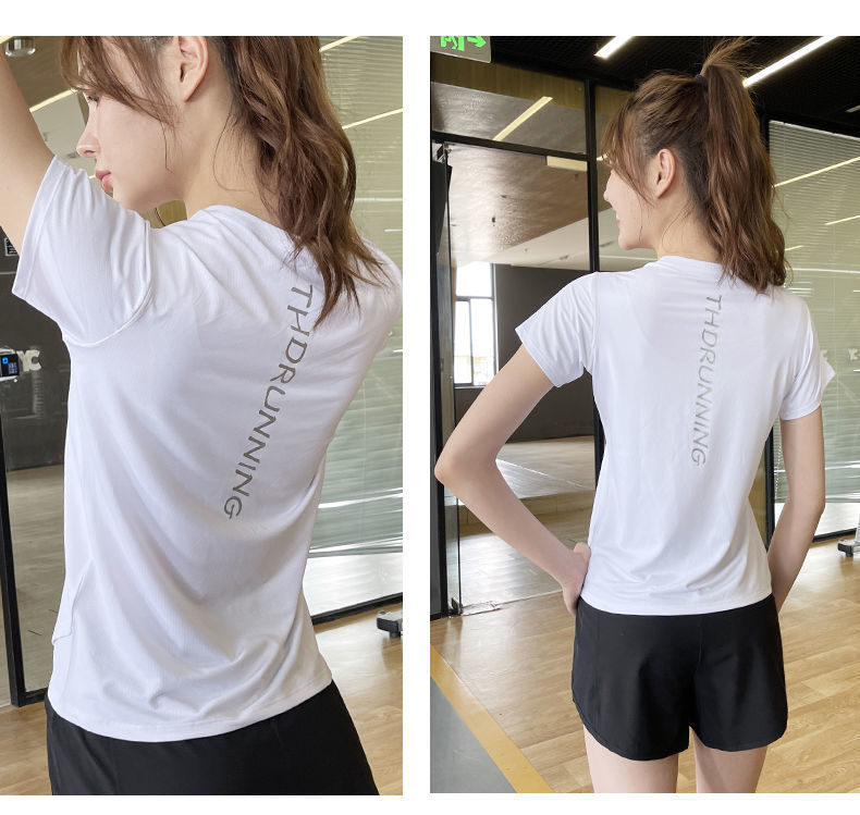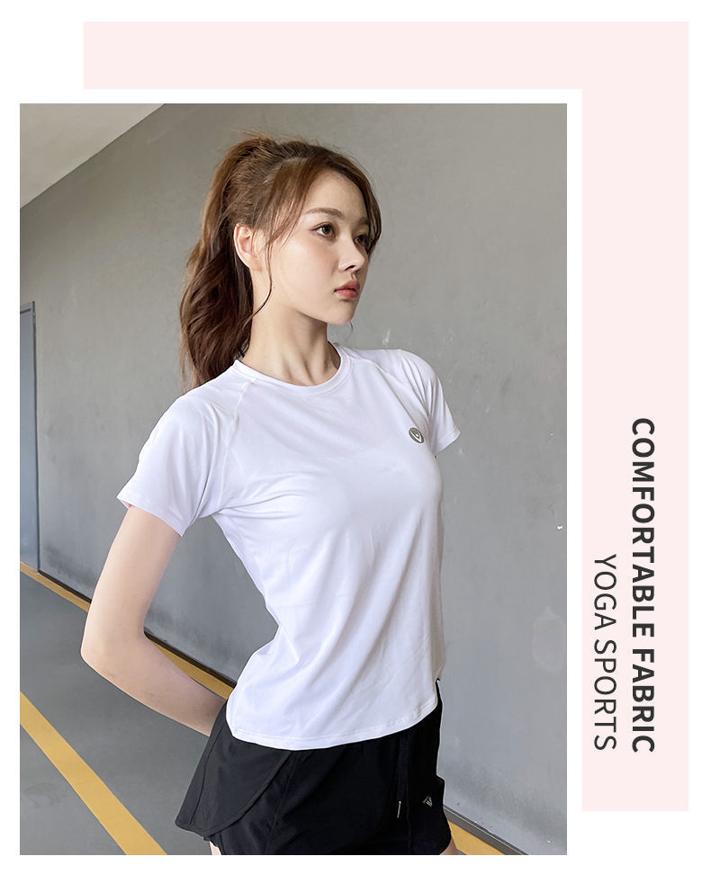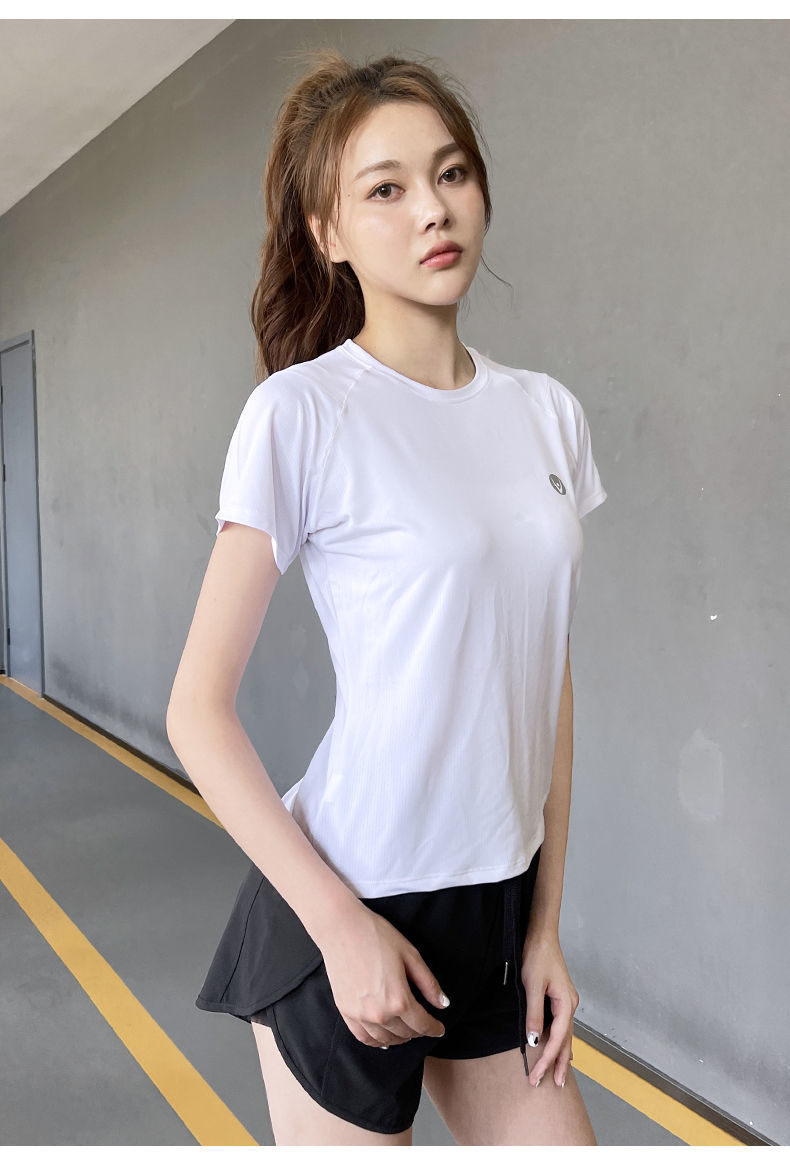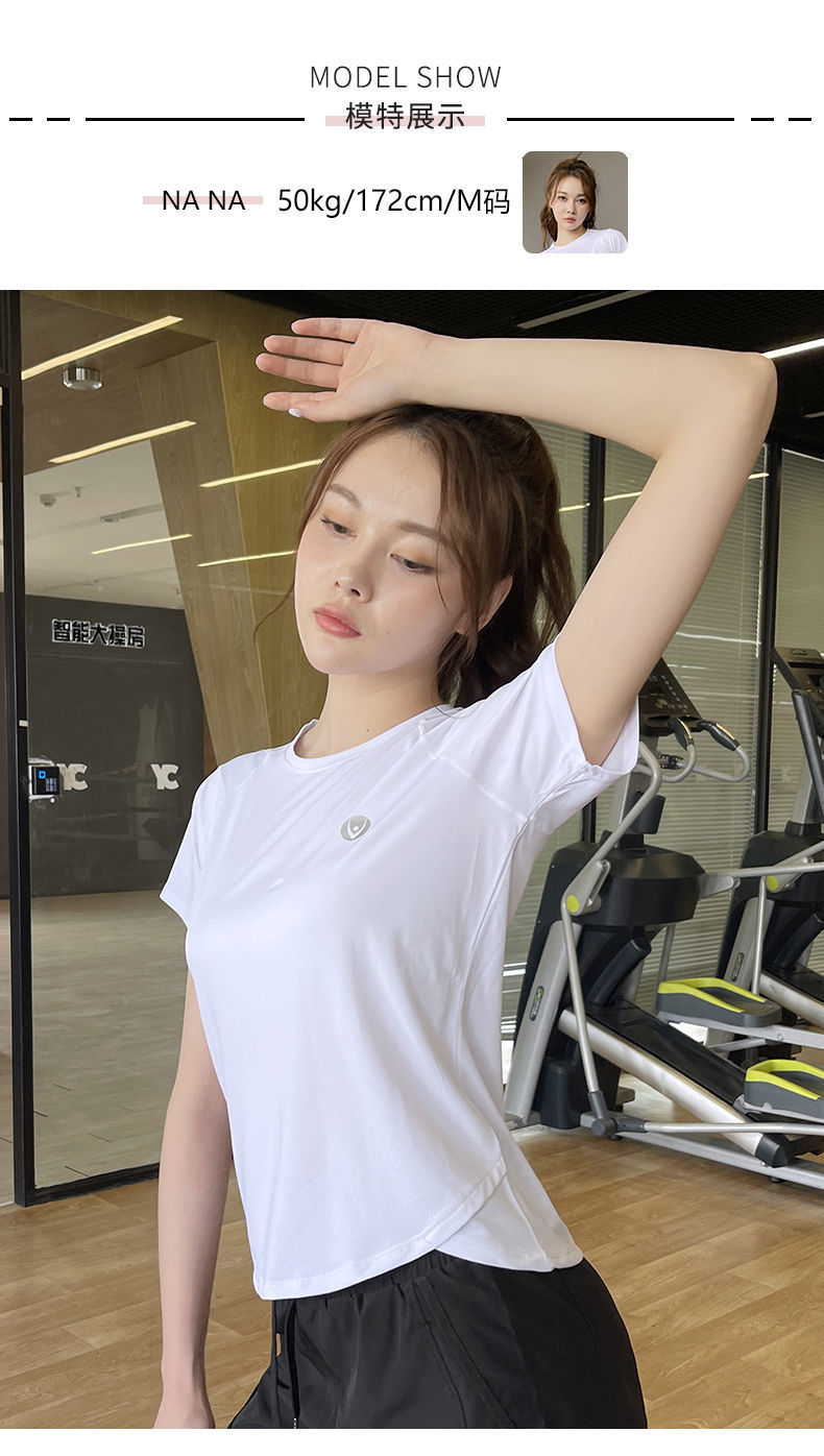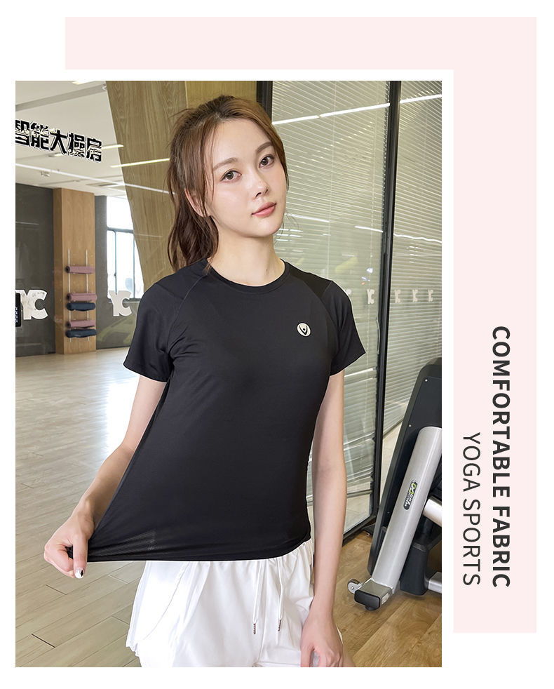 Camiseta deportiva de verano transpirable de yoga running top secado rápido hielo elástico manga corta fábrica de suministro al por mayor