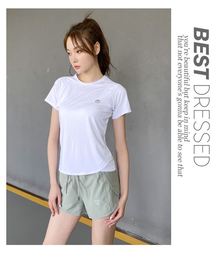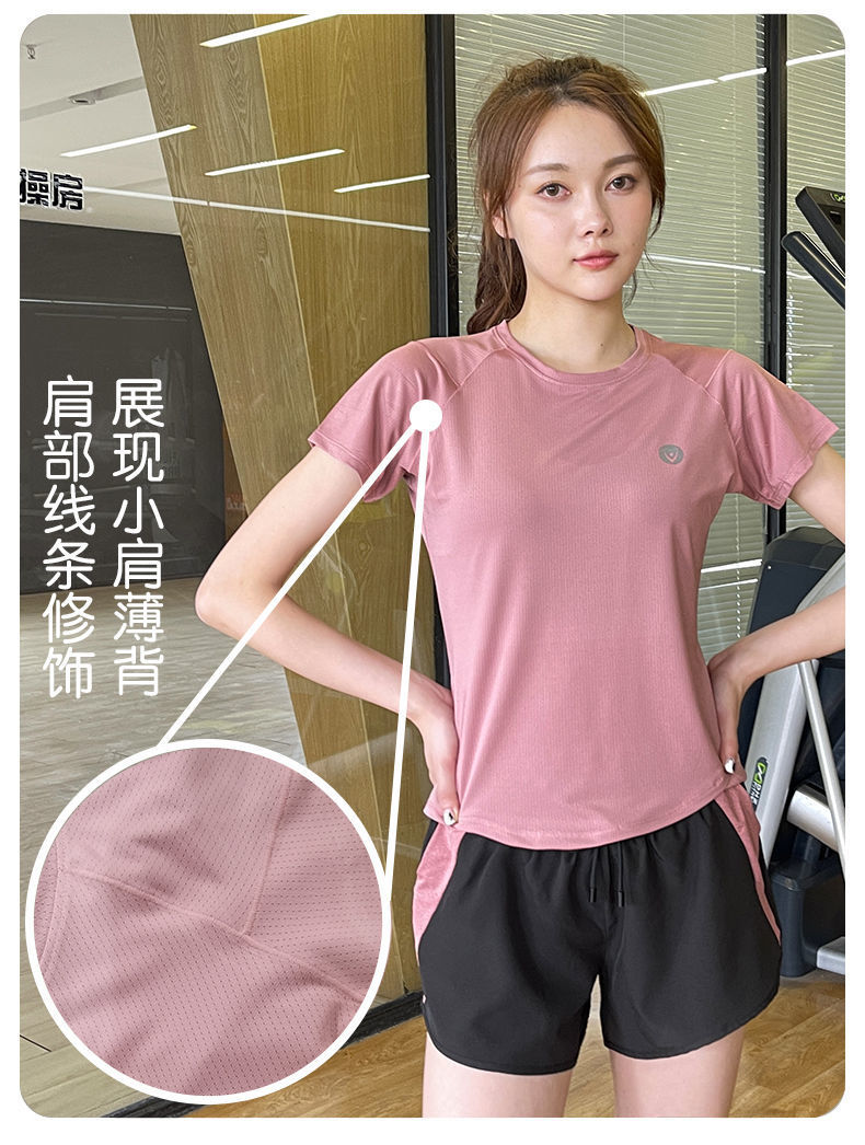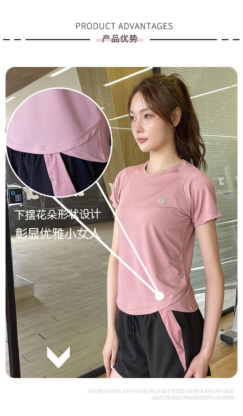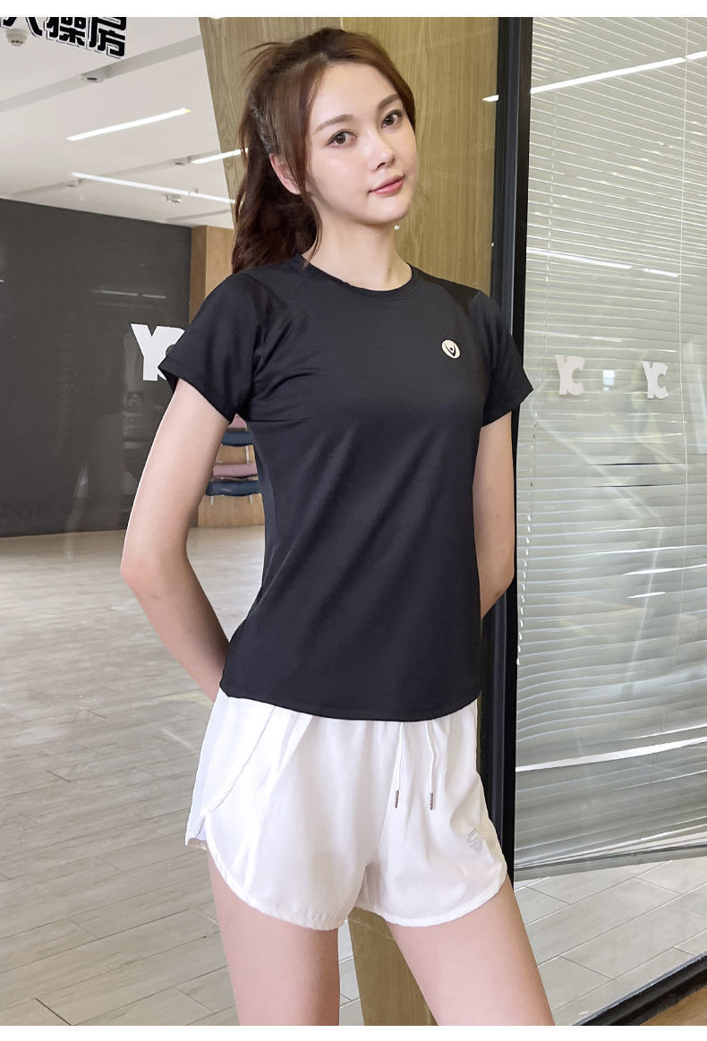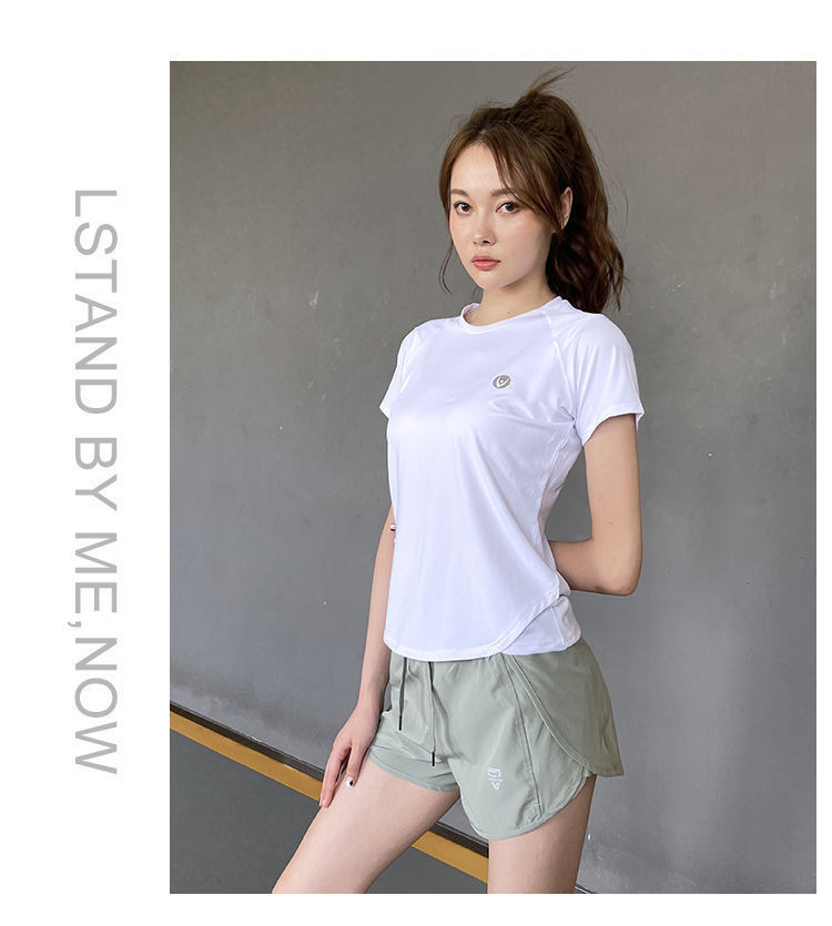Camiseta deportiva de verano transpirable de yoga running top secado rápido hielo elástico manga corta fábrica de suministro al por mayor