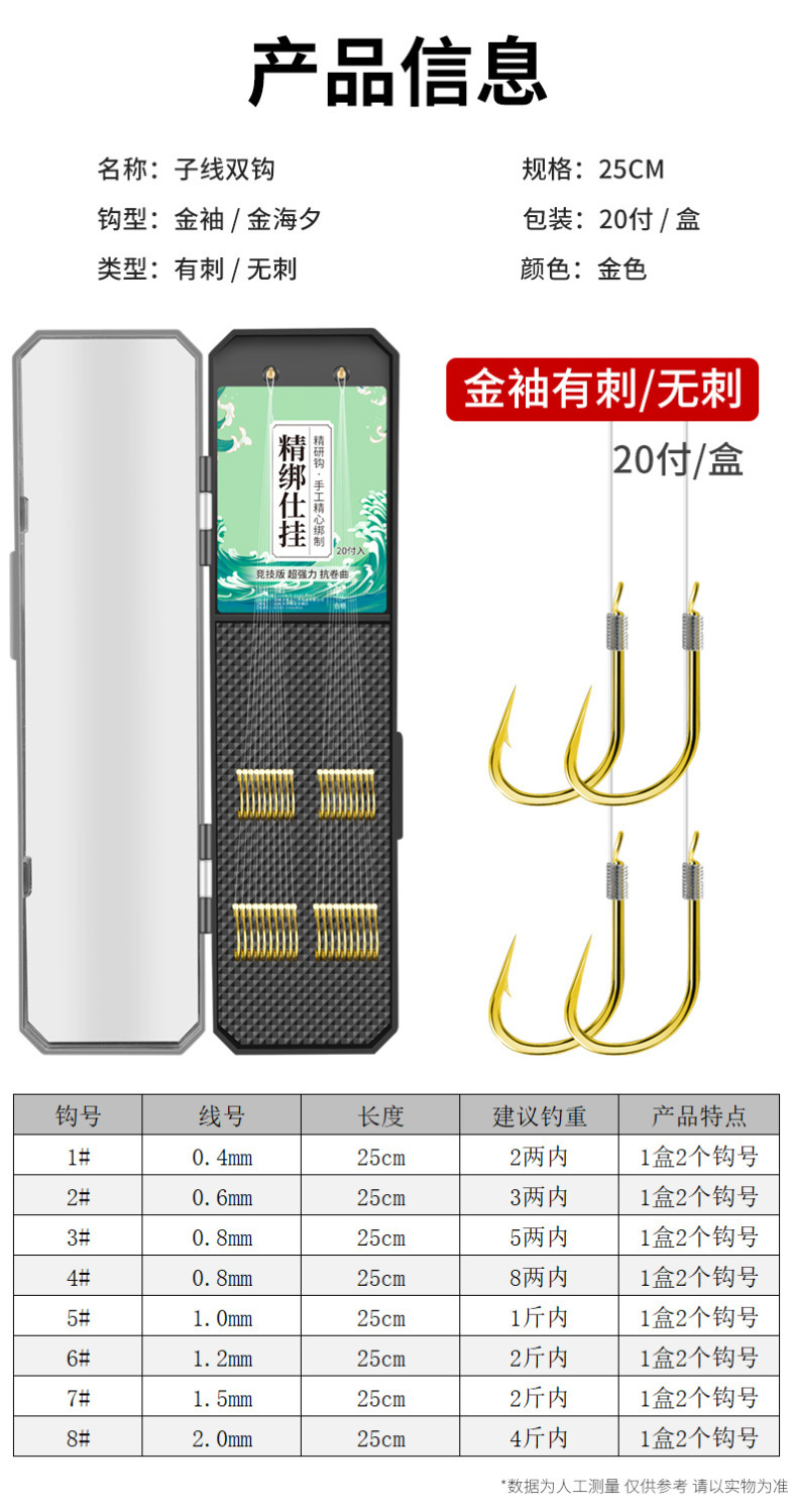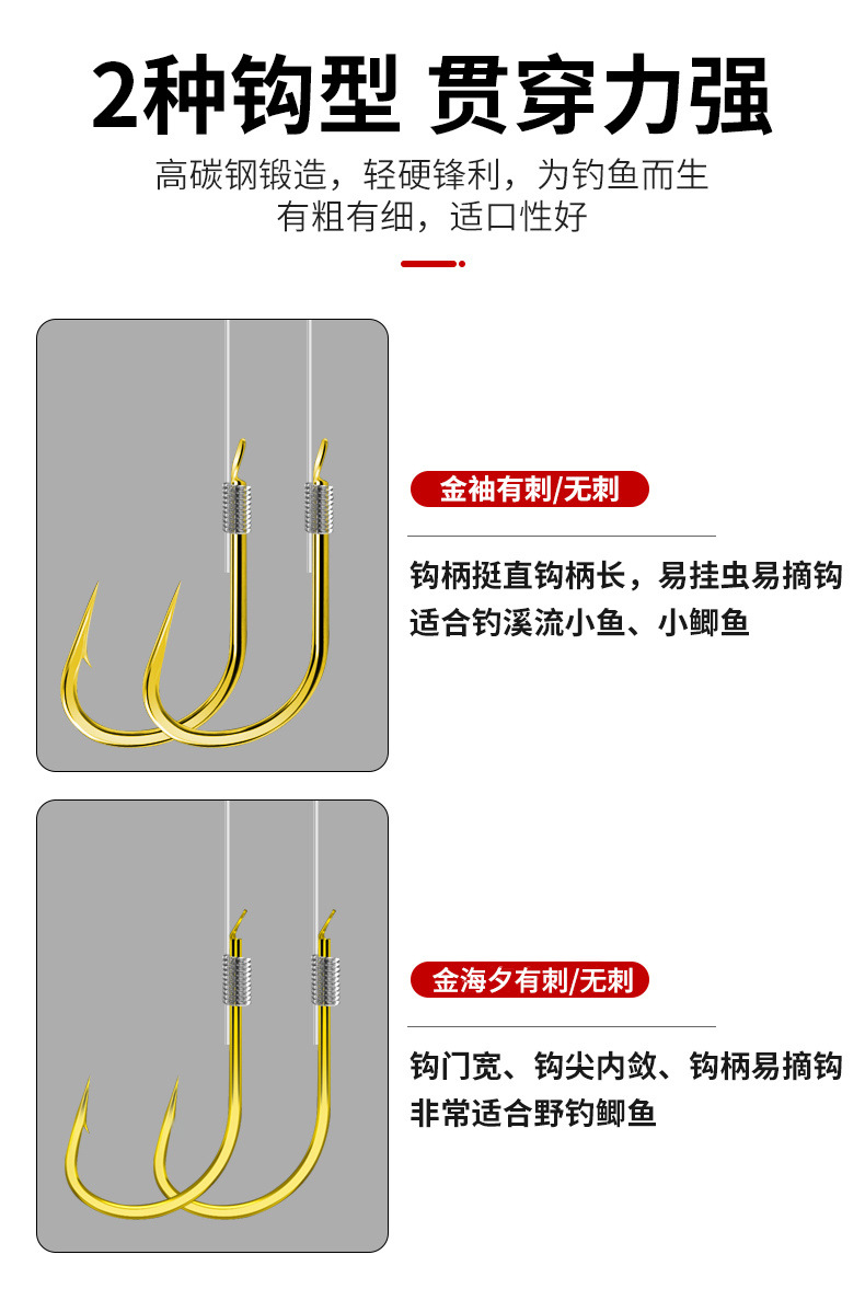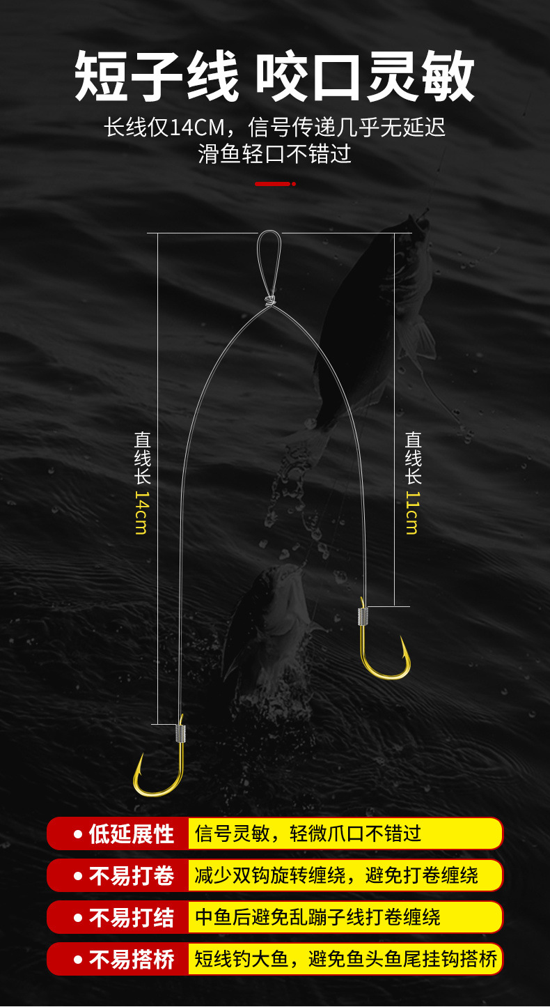 Pingda Jin Haixi anti-enredamiento línea de manga de oro doble gancho conjunto para enviar caja de línea salvaje gancho de carpa fábrica de comercio exterior