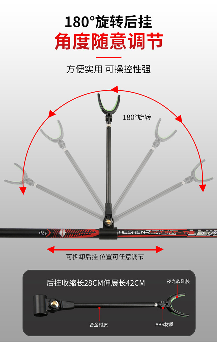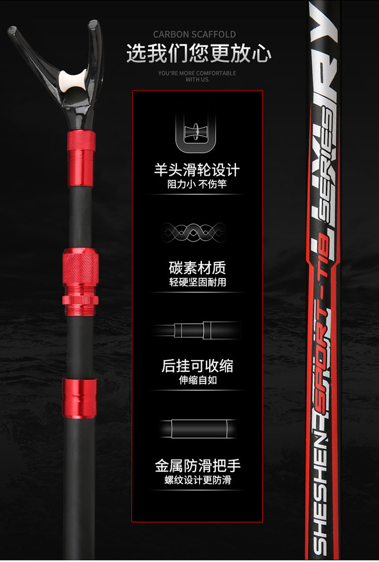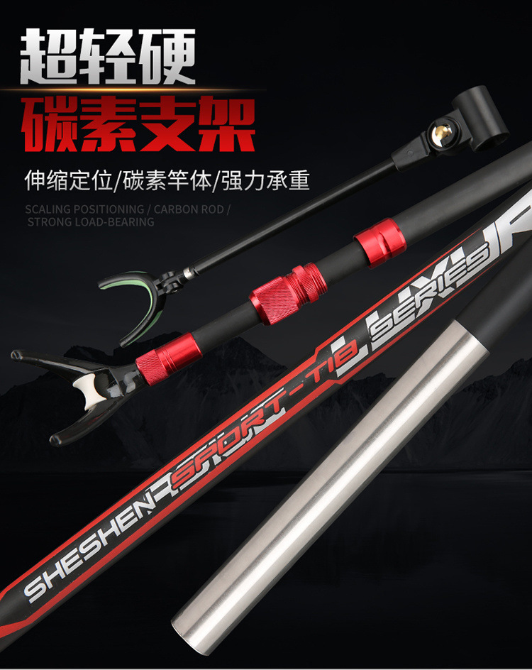 soporte de carbono caña de pesca silla de pesca caja de pescar marco de palo colgando en la parte posterior de la junta larga telescópico inserción de posición de la fábrica de marco de cañón de doble propósito