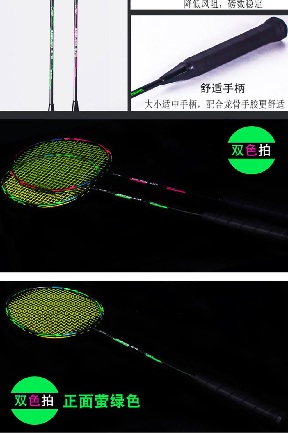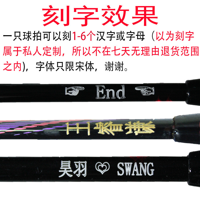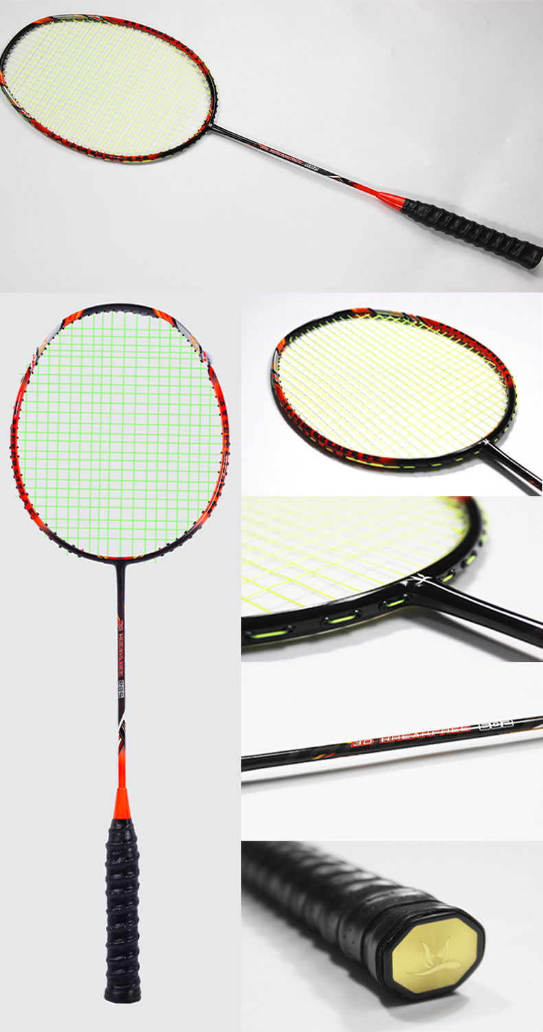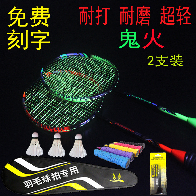 Raqueta de bádminton con letras 2 paquetes de doble disparo todo el carbono resistente al carbono traje de bádminton comercio cadena de suministro fábrica al por mayor