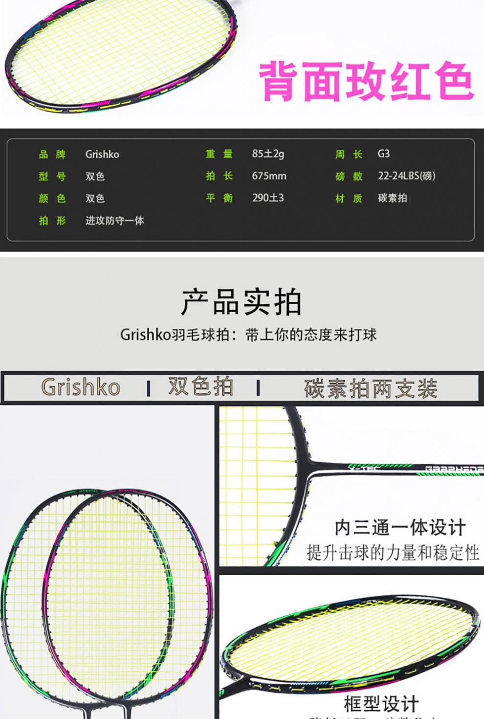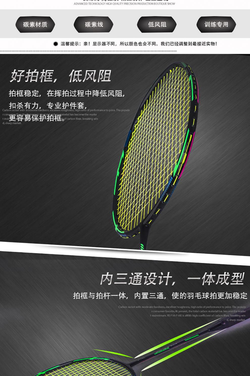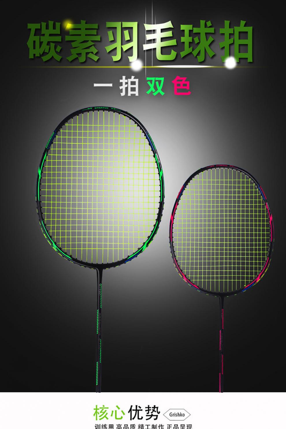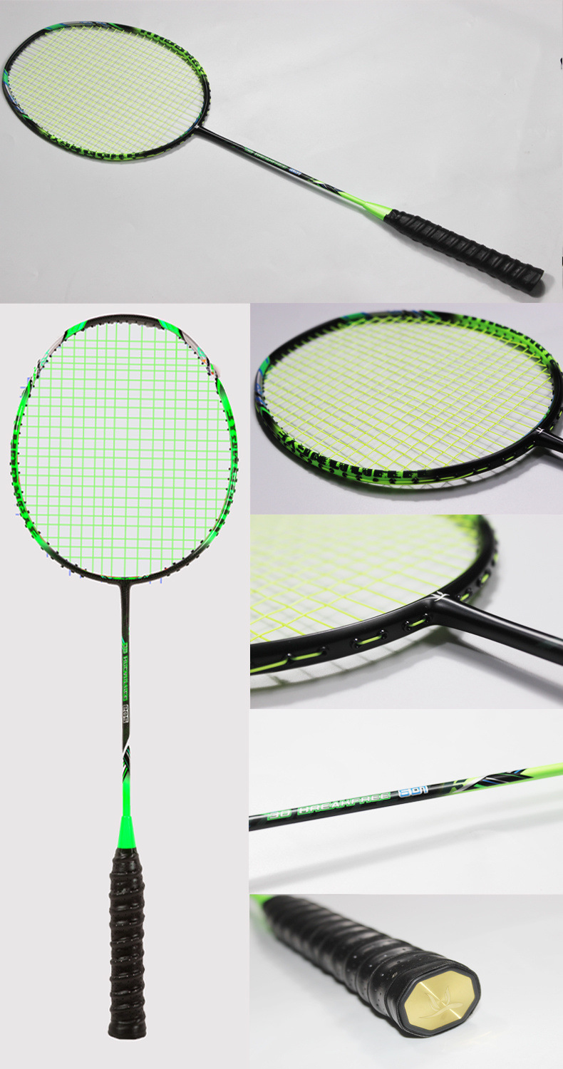 Raqueta de bádminton con letras 2 paquetes de doble disparo todo el carbono resistente al carbono traje de bádminton comercio cadena de suministro fábrica al por mayor