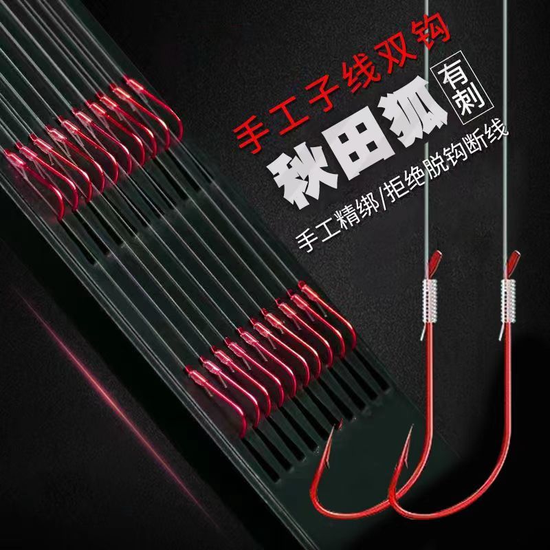 Akita línea de zorro de doble gancho productos terminados vincular gancho de pesca salvaje vincular conjunto corto gancho de carpa blanca comercio exterior