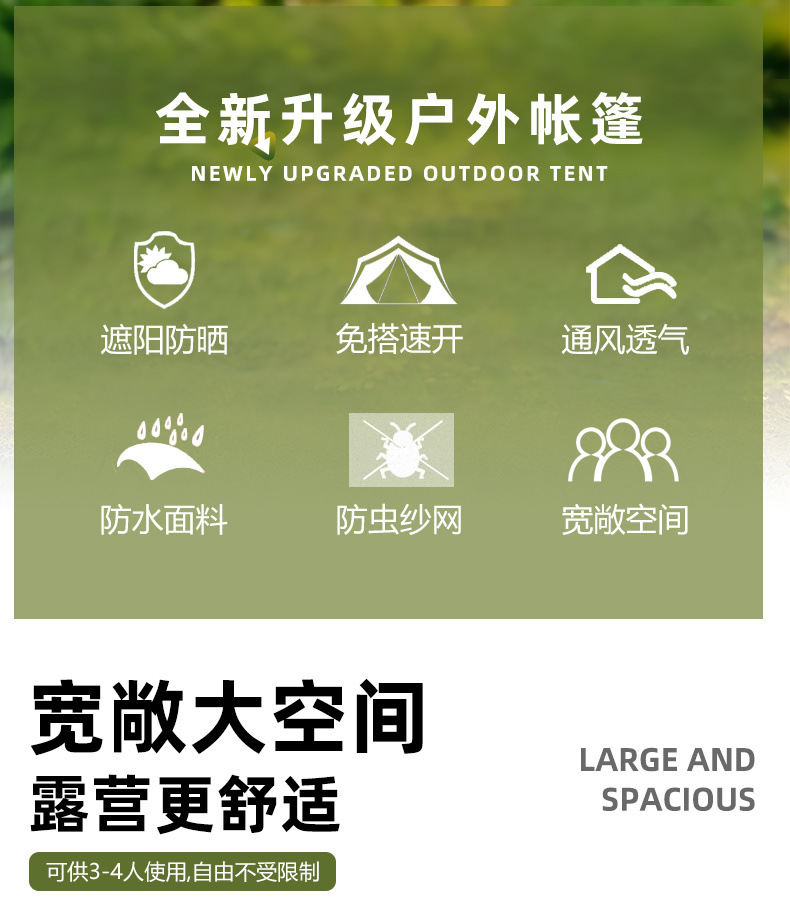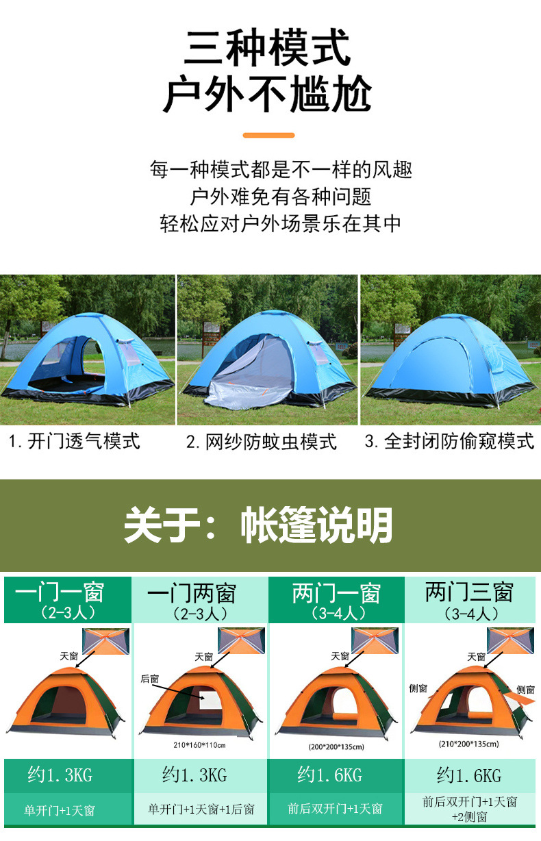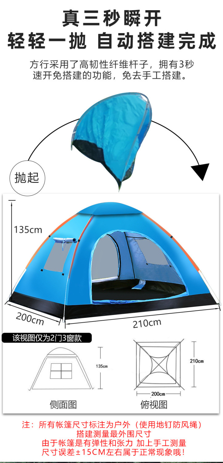 Carpa al aire libre 3-4 personas camping completamente automático 2 individual doble campo grueso a prueba de lluvia tienda de apertura rápida