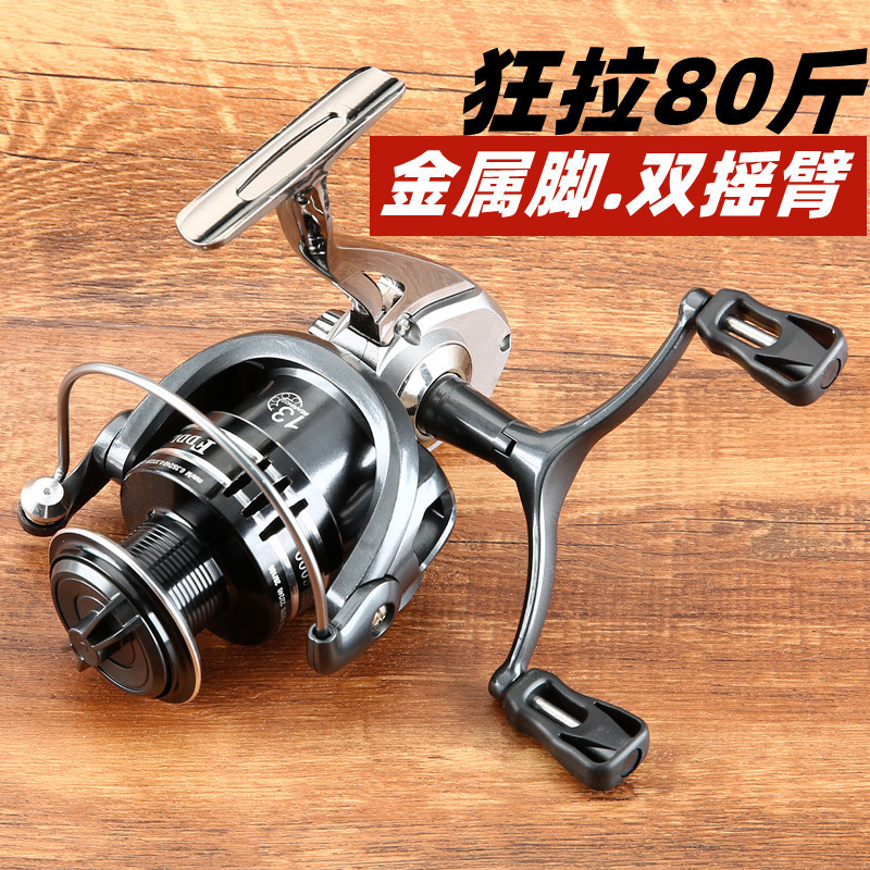 Doble brazo oscilante barco de pesca todo metal pie rueda giratoria puerto deslizante camino subrueda barra de lanzamiento de varilla de lanzamiento de larga distancia rueda de pesca