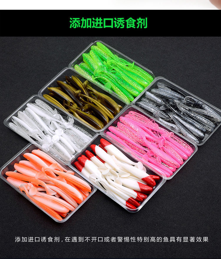 Sebo blando de pesca explosiva 50 talas de insectos blandos cabeza de plomo de pescado de pescado boca de osmanthus cebo falso de agua dulce de Texas conjunto de pesca