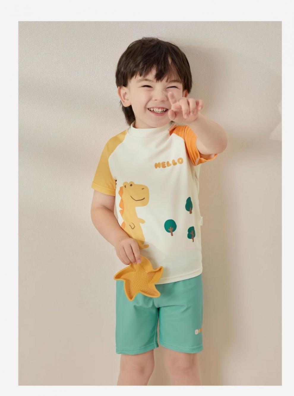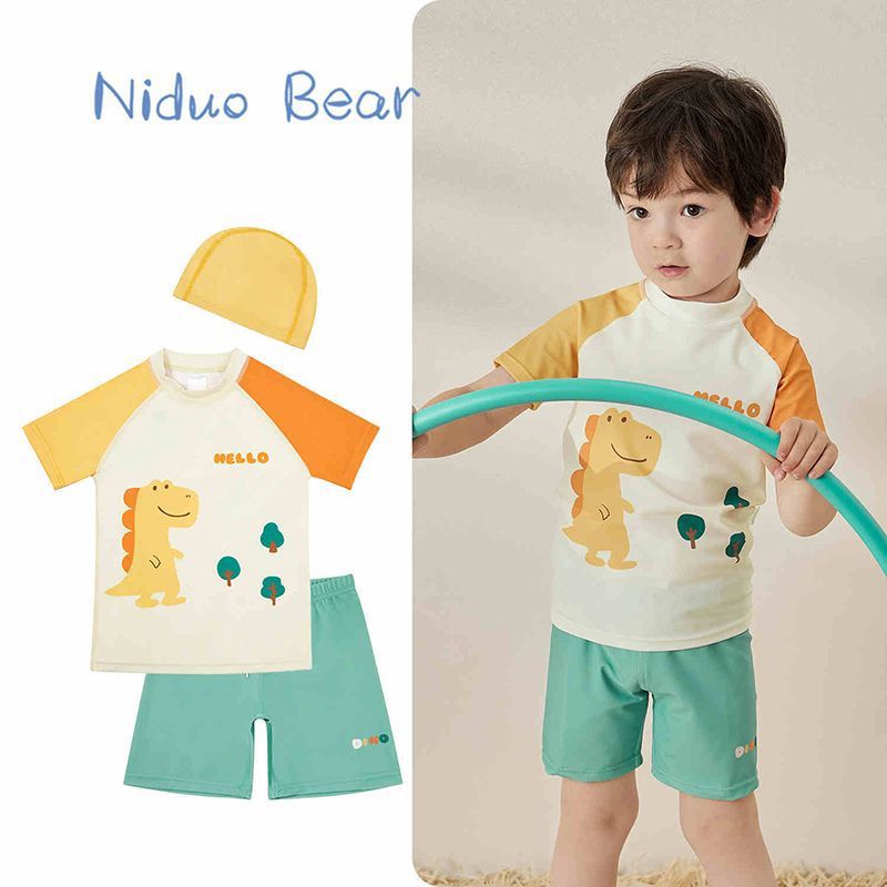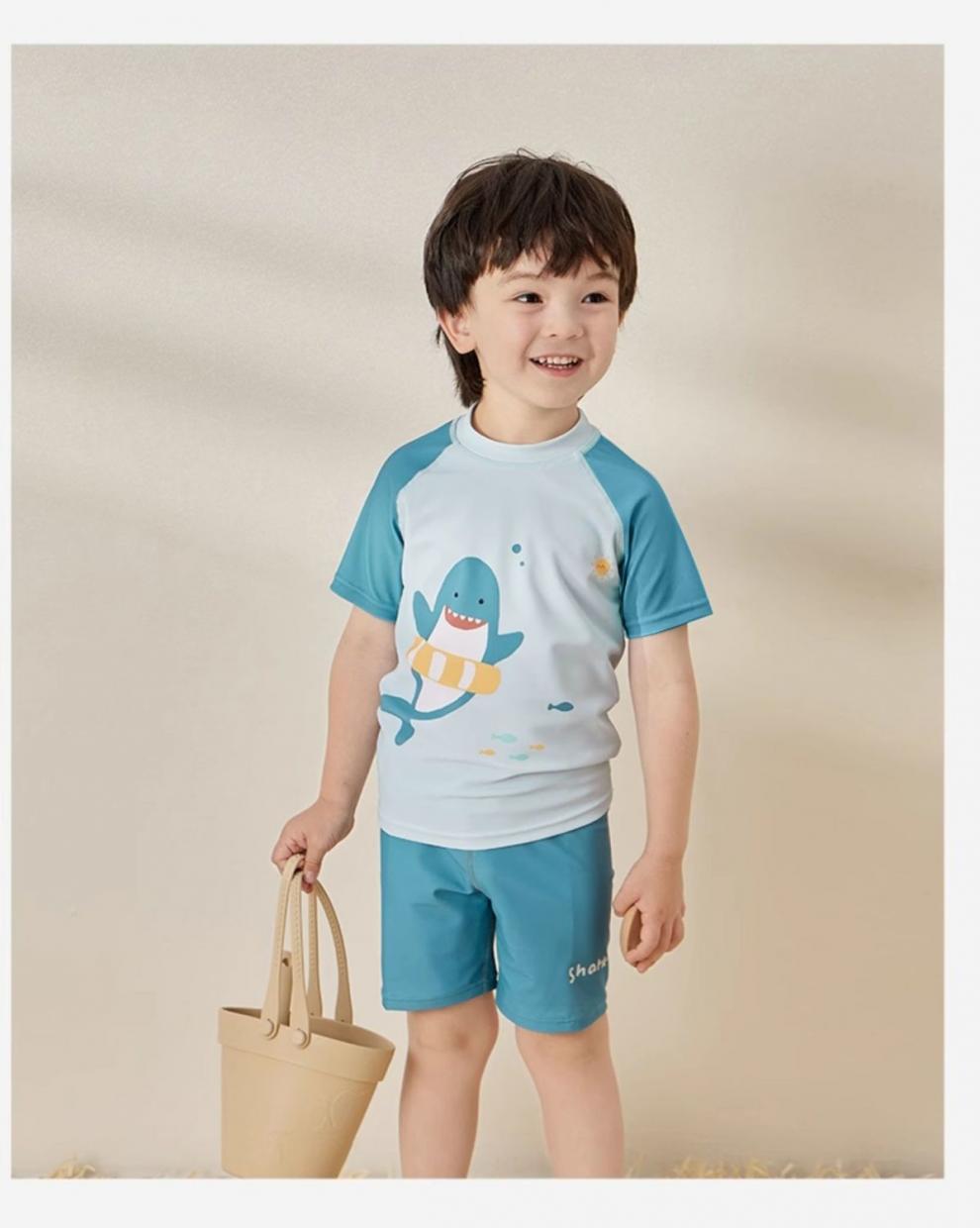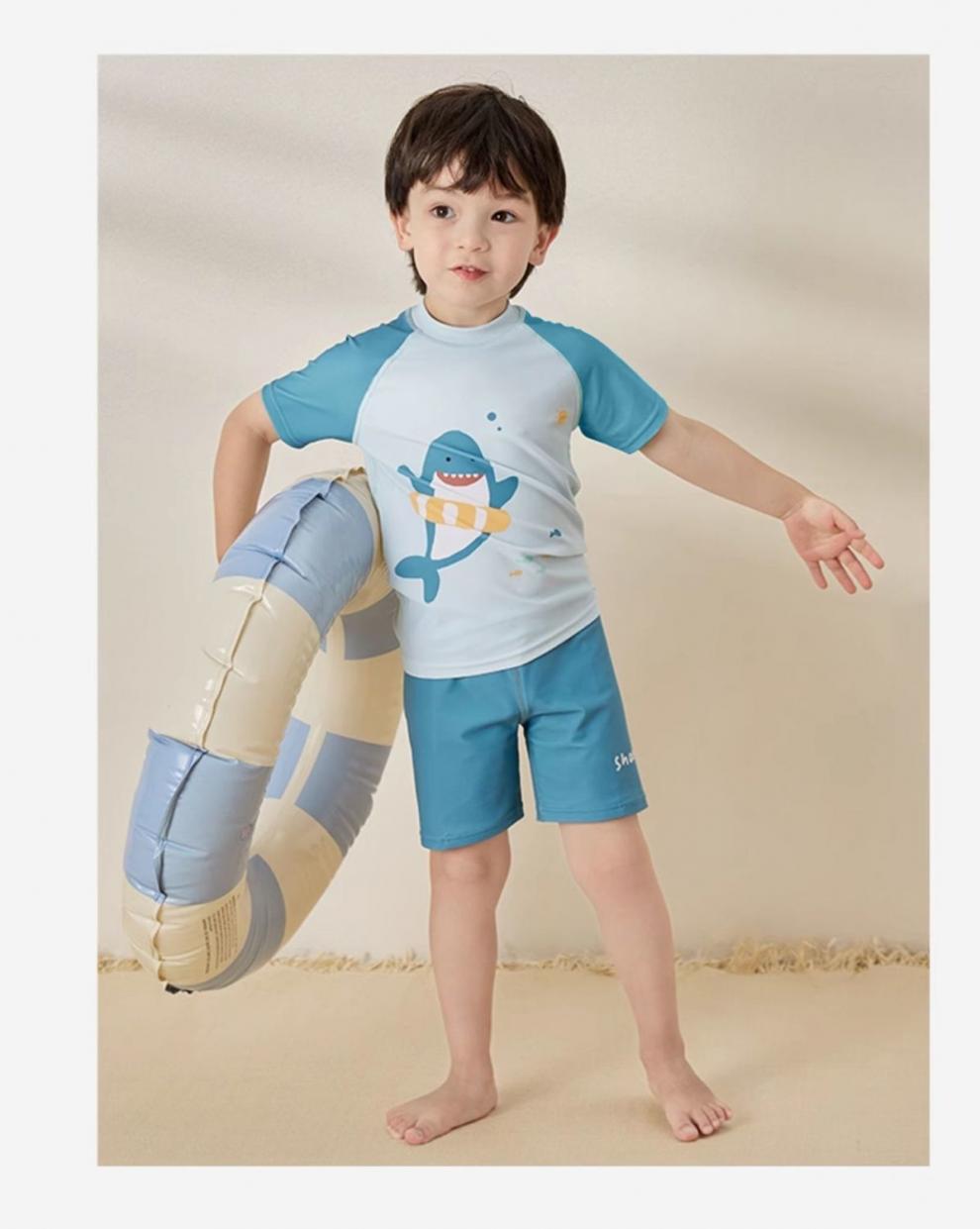 2025 trajes de baño para niños entrenamiento de natación de secado rápido set de aguas termales profesionales cinco puntos para niños de manga corta ropa corporal dividida comercio exterior
