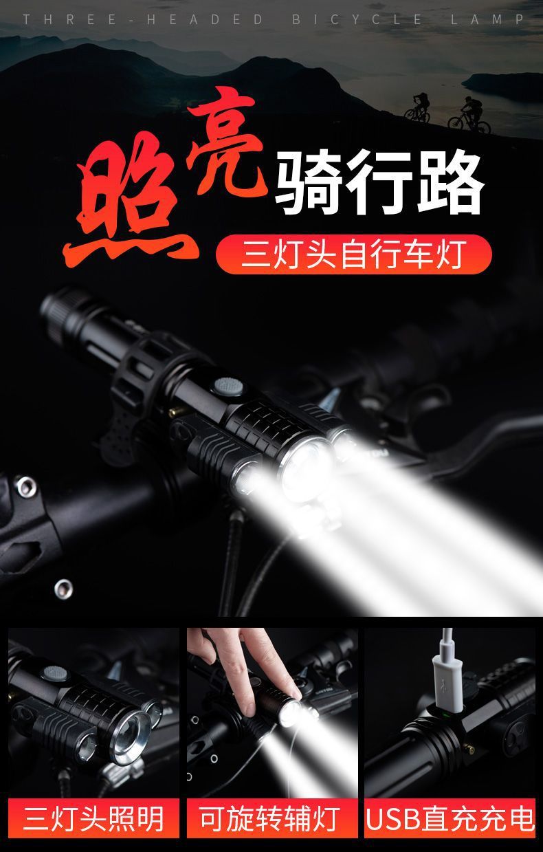 Lámpara de bicicleta nocturna de viaje nocturno luz brillante recargable accesorios de bicicleta eléctrica de bicicleta de montaña fábrica de faro comercio al por mayor