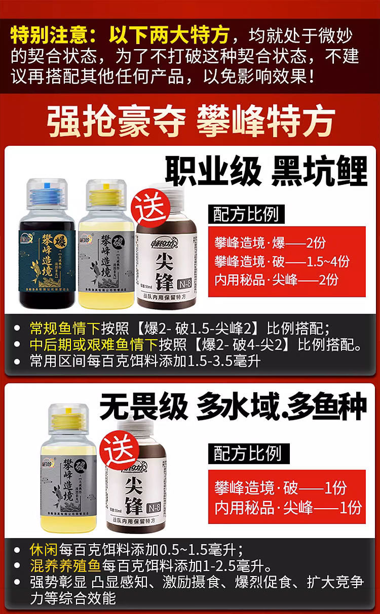 | Color | Escalar el pico para crear el territorio - romper el [estancamiento de la pesca rota] 80ml - "lista de compra obligatoria, botella única - explosión [deseo original del alma de ataque crítico] 80ml -" lista de compra obligatoria, botella única - demencial [tentación central] 80ml - "lista de compra obligatoria, demencial + pesca en pozo negro explosivo [carpa de boca cruda] - Lista de compra obligatoria, explosión + carpa de pozo negro roto [especialidad profesional] - Recomendación -" lista de compra obligatoria, demencial + ataque principal de carpa Crucian rota y múltiples especies de peces - "lista de compra obligatoria, demencial + explosión + competitividad de explosión múltiple] - Lista de compra obligatoria |