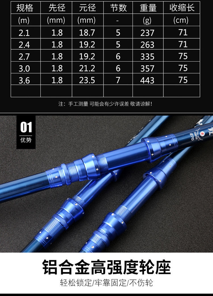 Carpa ultra dura barra de pesca de mar conjunto completo barra de lanzamiento de carbono anillo de conducción de 2.7 m 19 barra de mar barra de mar barra de mar fábrica de comercio único