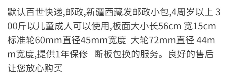 | Color | 22英寸(初学者使用/颜色随机)-基础小礼包---必买清单,56cm黑板银支架黑轮-基础小礼包---必买清单,56cm玫红板银支架玫红轮-基础小礼包---必买清单,56cm蓝板银支架蓝轮-基础小礼包---必买清单,56cm橙板橙透明轮-基础小礼包---必买清单,56cm白板白支架白轮-基础小礼包---必买清单,56cm绿板白支架绿轮-基础小礼包---必买清单,56cm粉板粉支架紫透明轮-基础小礼包---必买清单,22英寸(初学者使用/颜色随机)-豪华大礼包---必买清单,56cm红板红支架红闪轮 【送护具】-基础小礼包---必买清单,56cm白板白支架白闪光轮【送护具】-基础小礼包---必买清单,56cm紫板紫闪光轮 【送护具】-基础小礼包---必买清单,56cm黄板白支架黄闪光轮【送护具】-基础小礼包---必买清单,56cm橙板橙闪光轮【送护具】-基础小礼包---必买清单,56cm绿板白支架绿闪光轮【送护具】-基础小礼包---必买清单,56cm天蓝板天蓝闪光轮【送护具】-基础小礼包---必买清单,56cm玫红板玫红闪光轮【送护具】-基础小礼包---必买清单,56cm蓝板蓝支架蓝闪光轮【送护具】-基础小礼包---必买清单,56cm粉板粉闪光轮【送护具】-基础小礼包---必买清单,56cm黑板黑闪光轮【送护具】-基础小礼包---必买清单,56cm高配橙板橙大轮 【送护具】-基础小礼包---必买清单,56cm高配黑板黑大轮 【送护具】-基础小礼包---必买清单,56cm高配黄板黄大轮 【送护具】-基础小礼包---必买清单,56cm黑板银支架黑轮-豪华大礼包---必买清单,56cm玫红板银支架玫红轮-豪华大礼包---必买清单,56cm蓝板银支架蓝轮-豪华大礼包---必买清单,56cm橙板橙透明轮-豪华大礼包---必买清单,56cm白板白支架白轮-豪华大礼包---必买清单,56cm绿板白支架绿轮-豪华大礼包---必买清单,56cm粉板粉支架紫透明轮-豪华大礼包---必买清单,56cm高配黑板黑闪光大轮【送护具】-基础小礼包---必买清单,56cm高配粉板粉闪大轮【送护具】-基础小礼包---必买清单,56cm高配蓝板蓝闪光大轮【送护具】-基础小礼包---必买清单,56cm红板红支架红闪轮 【送护具】-豪华大礼包---必买清单,56cm白板白支架白闪光轮【送护具】-豪华大礼包---必买清单,56cm紫板紫闪光轮 【送护具】-豪华大礼包---必买清单,56cm黄板白支架黄闪光轮【送护具】-豪华大礼包---必买清单,56cm橙板橙闪光轮【送护具】-豪华大礼包---必买清单,56cm绿板白支架绿闪光轮【送护具】-豪华大礼包---必买清单,56cm天蓝板天蓝闪光轮【送护具】-豪华大礼包---必买清单,56cm玫红板玫红闪光轮【送护具】-豪华大礼包---必买清单,56cm蓝板蓝支架蓝闪光轮【送护具】-豪华大礼包---必买清单,56cm粉板粉闪光轮【送护具】-豪华大礼包---必买清单,56cm黑板黑闪光轮【送护具】-豪华大礼包---必买清单,高配加长27寸天蓝板天蓝闪轮送护具-基础小礼包---必买清单,56cm高配橙板橙大轮 【送护具】-豪华大礼包---必买清单,56cm高配黑板黑大轮 【送护具】-豪华大礼包---必买清单,56cm高配黄板黄大轮 【送护具】-豪华大礼包---必买清单,高配加长27寸黑板黑磨砂大轮送护具-基础小礼包---必买清单,高配加长27寸白板黑大轮送护具-基础小礼包---必买清单,56cm高配黑板黑闪光大轮【送护具】-豪华大礼包---必买清单,56cm高配粉板粉闪大轮【送护具】-豪华大礼包---必买清单,56cm高配蓝板蓝闪光大轮【送护具】-豪华大礼包---必买清单,高配加长27寸黑板黑磨砂大轮送护具-豪华大礼包---必买清单,高配加长27寸蓝板蓝磨砂闪大轮送护具-基础小礼包---必买清单,高配加长27寸蓝板蓝磨砂闪大轮送护具-豪华大礼包---必买清单,高配加长27寸玫板粉磨砂闪大轮送护具-基础小礼包---必买清单,高配加长27寸玫板粉磨砂闪大轮送护具-豪华大礼包---必买清单,高配加长27寸白板黑大轮送护具-豪华大礼包---必买清单,高配加长27寸黑板黑闪光大轮送护具-基础小礼包---必买清单,高配加长27寸黑板黑闪光大轮送护具-豪华大礼包---必买清单,高配加长27寸天蓝板天蓝闪轮送护具-豪华大礼包---必买清单,高配加长27寸蓝板蓝闪光大轮送护具-基础小礼包---必买清单,高配加长27寸蓝板蓝闪光大轮送护具-豪华大礼包---必买清单,高配加长27寸玫板粉闪光大轮送护具-基础小礼包---必买清单,高配加长27寸玫板粉闪光大轮送护具-豪华大礼包---必买清单,高配加长27寸白板黑磨砂闪大轮送护具-基础小礼包---必买清单,高配加长27寸白板黑磨砂闪大轮送护具-豪华大礼包---必买清单 |