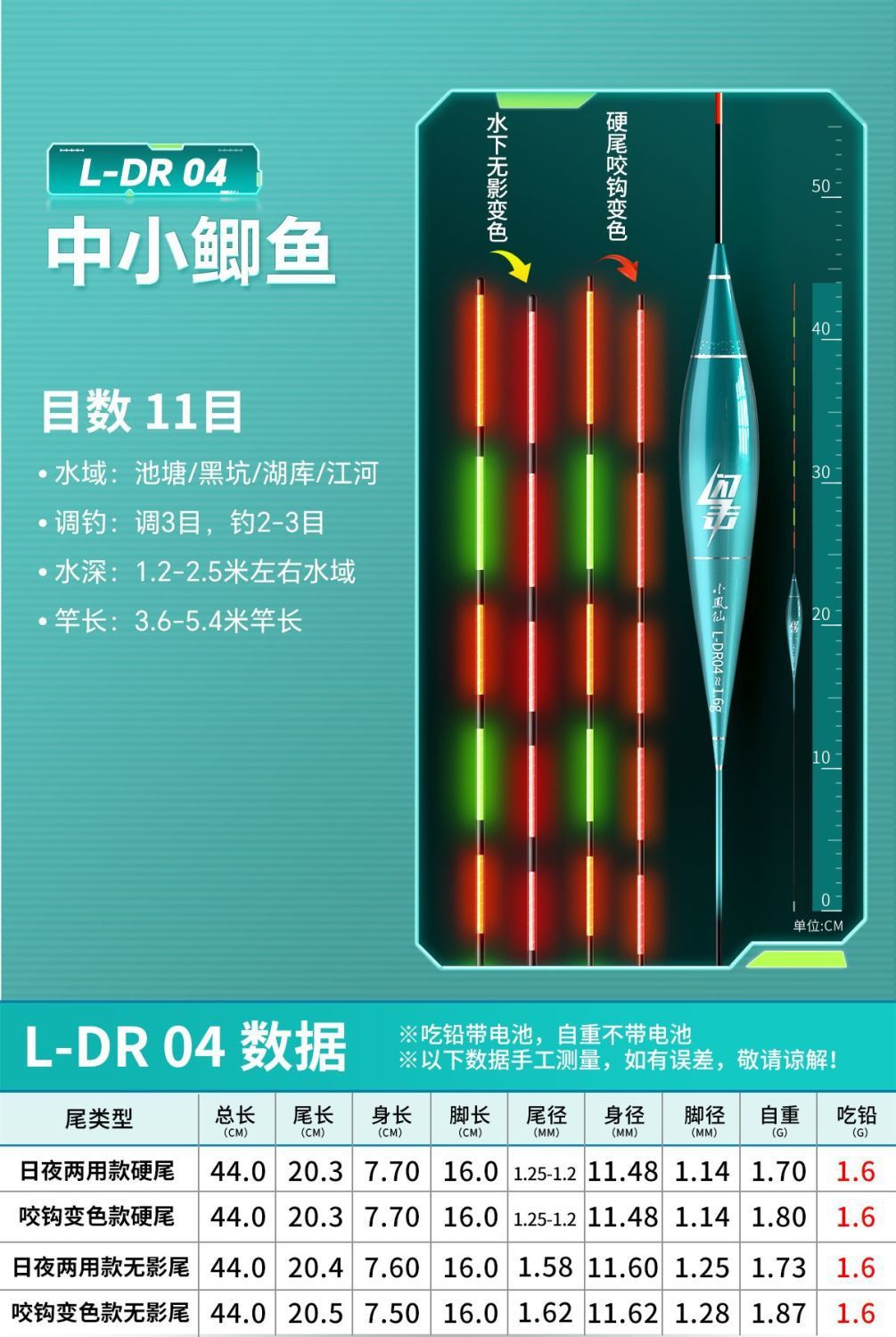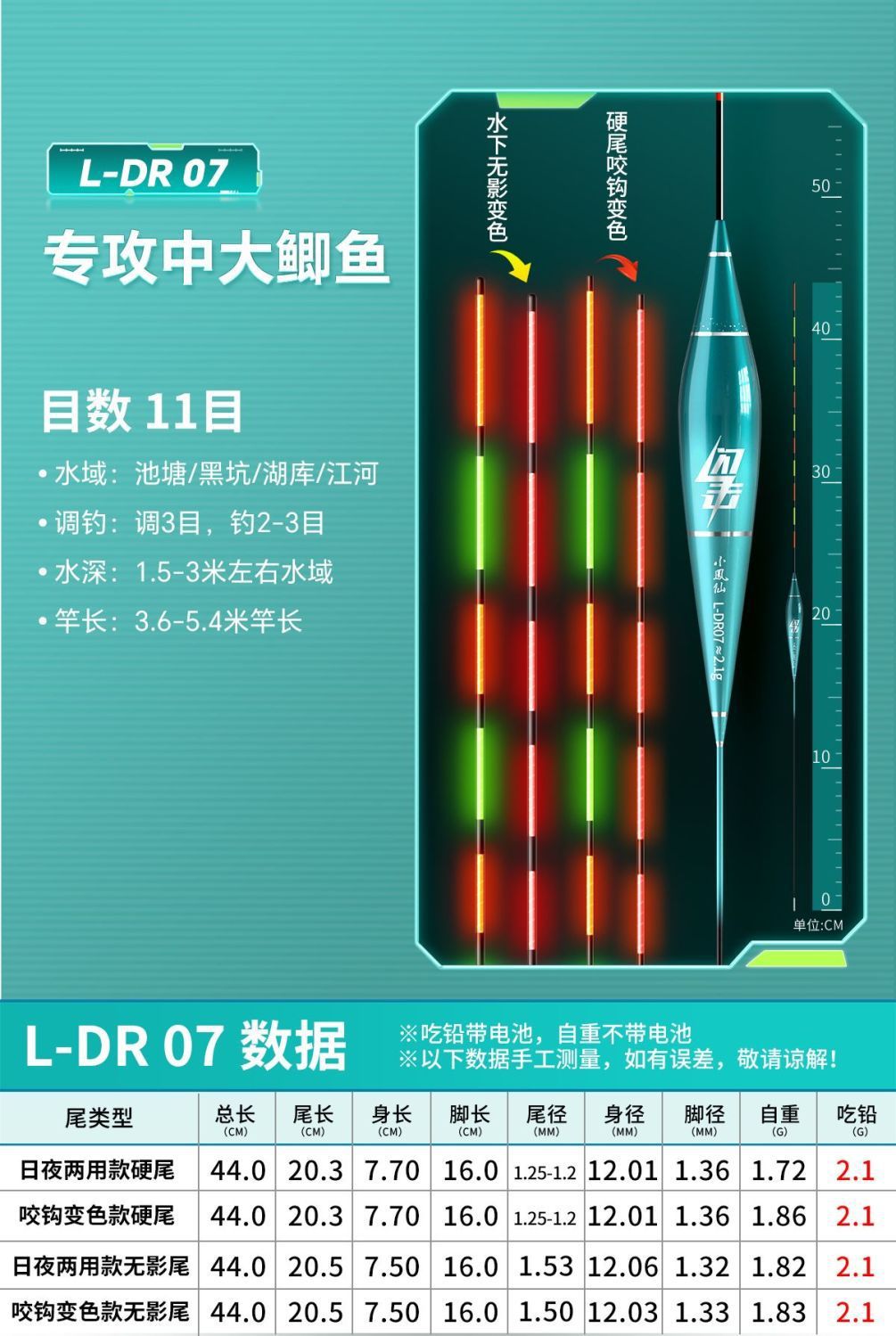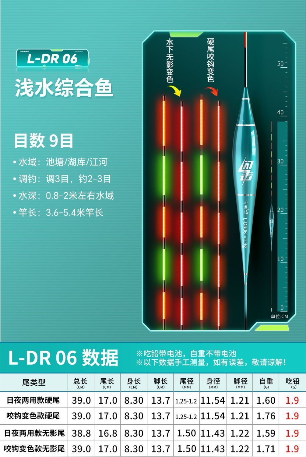 Nocturno flotante gancho de mordida decoloración llamativa alta sensibilidad bajo el agua sin sombra día y noche doble propósito de pesca de captura flotante fábrica de comercio electrónico