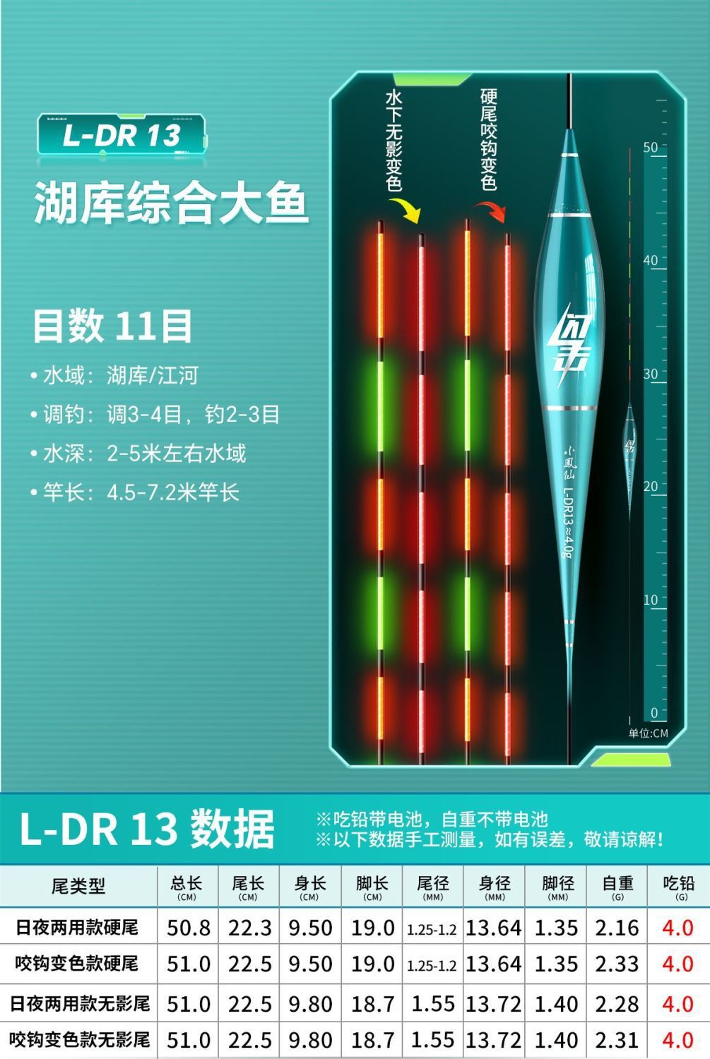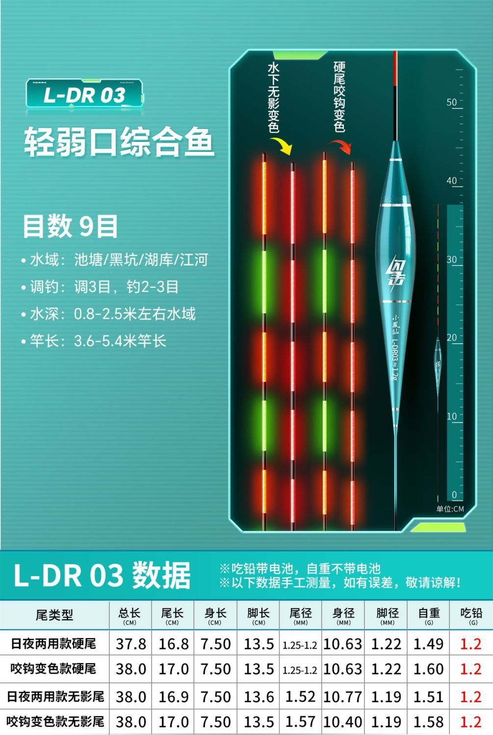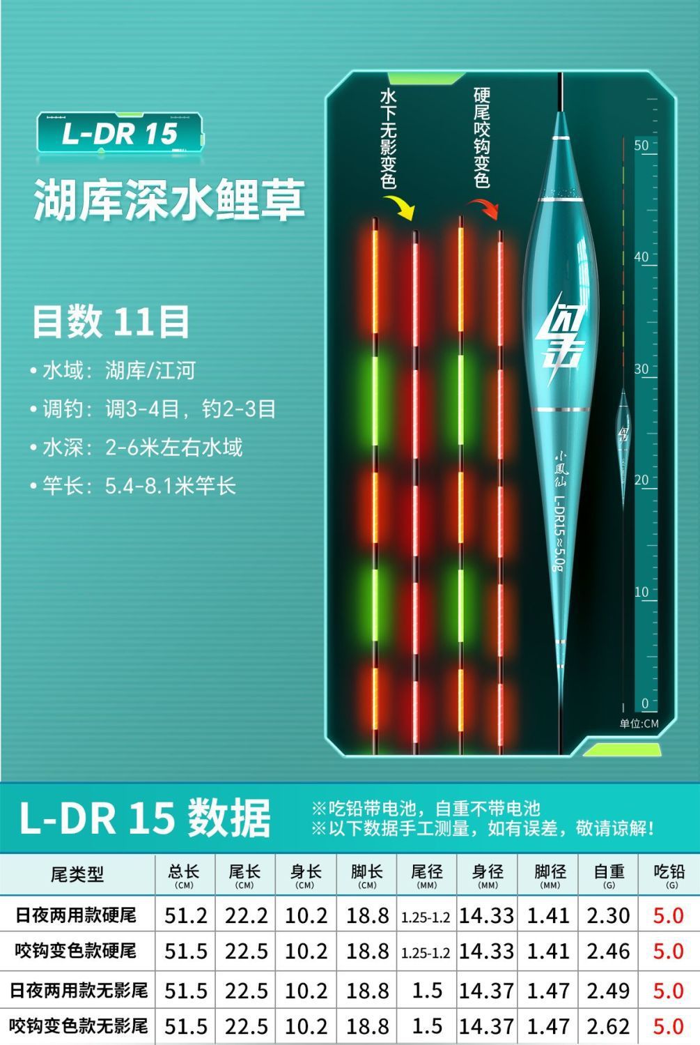 Nocturno flotante gancho de mordida decoloración llamativa alta sensibilidad bajo el agua sin sombra día y noche doble propósito de pesca de captura flotante fábrica de comercio electrónico