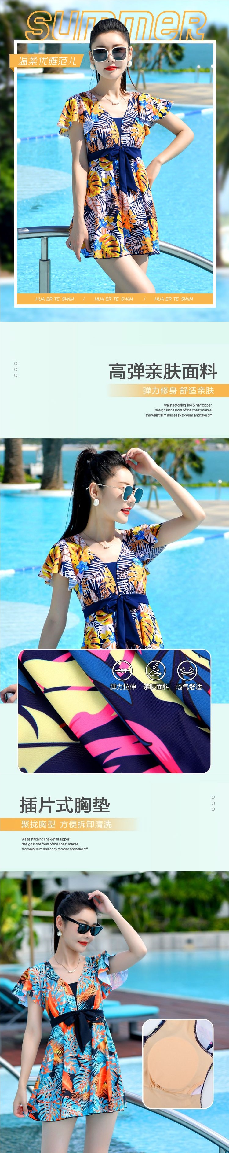 2024 nuevo trajes de baño conservadores para mujeres cubren el abdomen y los ángulos planos para bañarse en aguas termales grandes mm gordo madre de mediana edad suelta comercio exterior