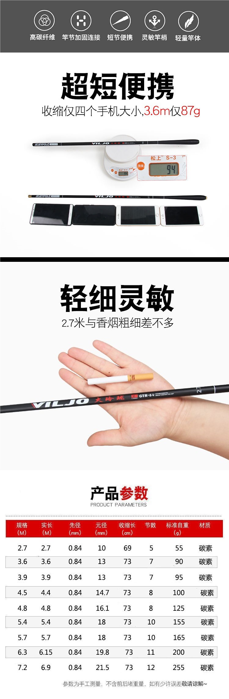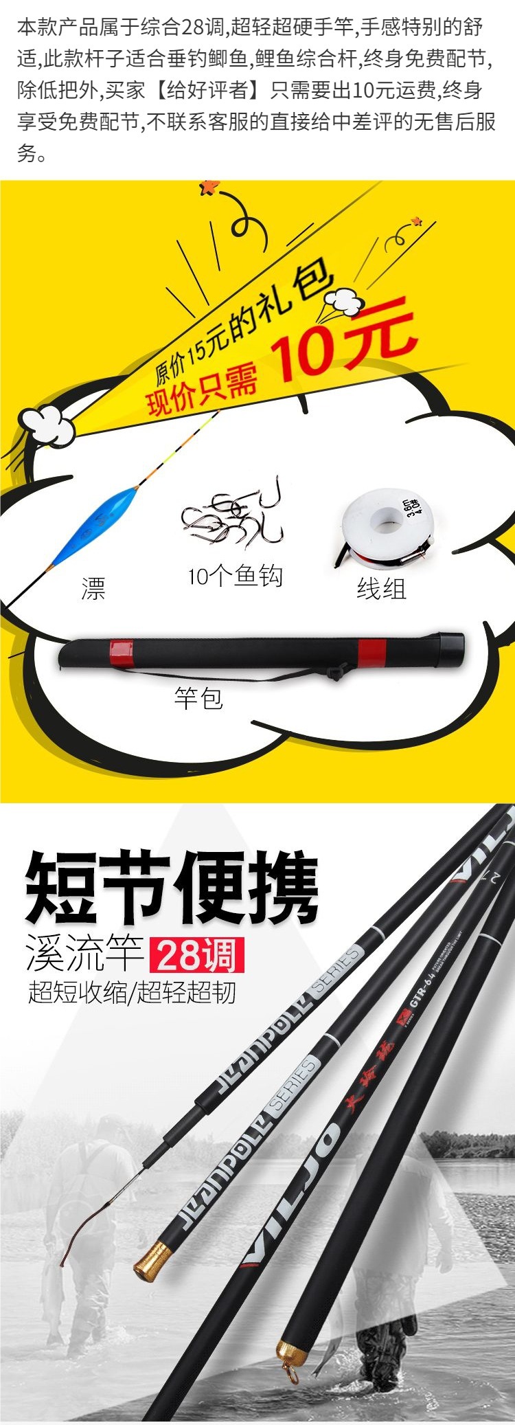 Caña de pesca de mano corta, caña de arroyo ultraligera, ultrafina, 4h28 tono de carbono, caña de pesca de carpa, comercio exterior al por mayor