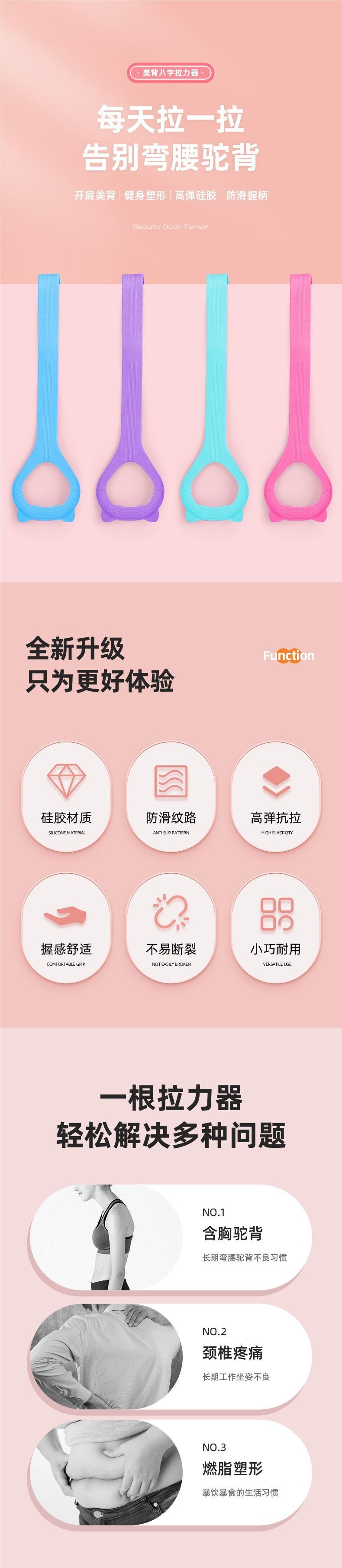 Tensión de la mujer abertura de la espalda casera yoga elástica cuerda de estiramiento hombro de entrenamiento de espalda estiramiento fábrica de espalda comercio exterior