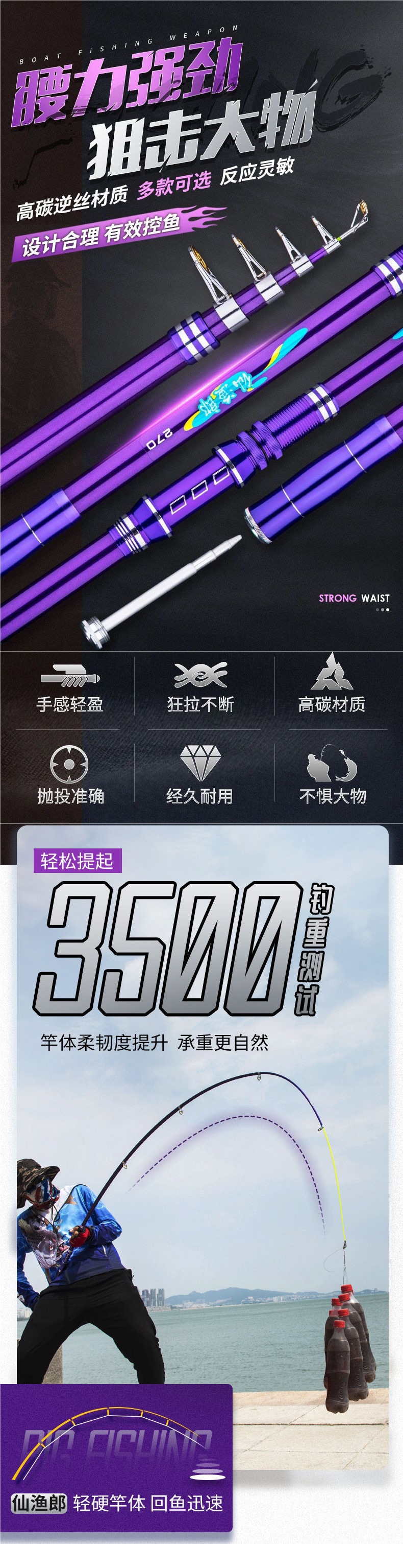 Caña de mar telescópico lanzamiento de larga distancia línea de carbono ultra dura línea de pesca de metal conjunto de rueda ligera lanzamiento de larga distancia línea de pesca de larga distancia un conjunto completo