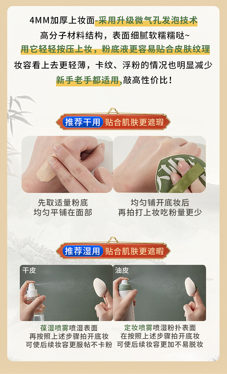 Guofeng gran marshmallow XL seco y húmedo gota de agua de doble uso gran pastel de polvo sensación de aire súper suave no comer polvo líquido base