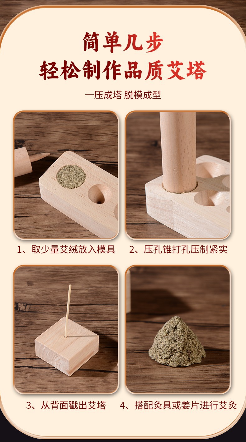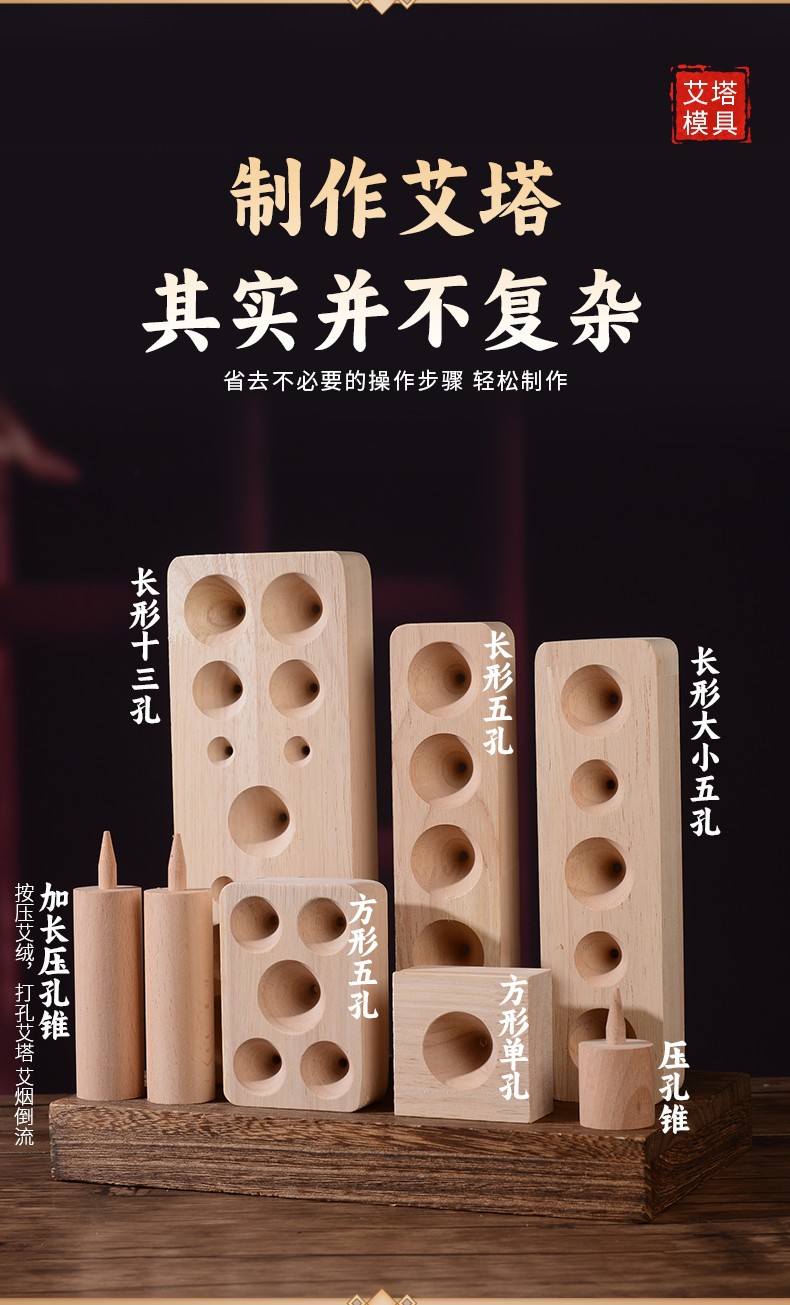Aita molde de madera sólida multi-especificación algodón de algodón prensado formador cónico algodón contra flujo de humo barrera de algodón herramienta hecha a mano