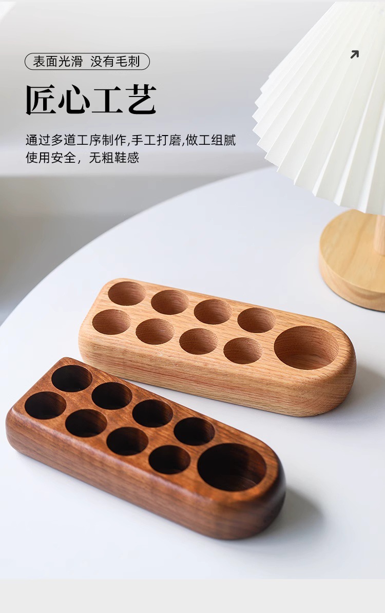 3 agujeros 9 agujeros de roble rojo lápiz labial caja de almacenamiento de aceite esencial marco de madera maciza salón de belleza aromaterapia botella de aceite esencial marco de exhibición de escritorio