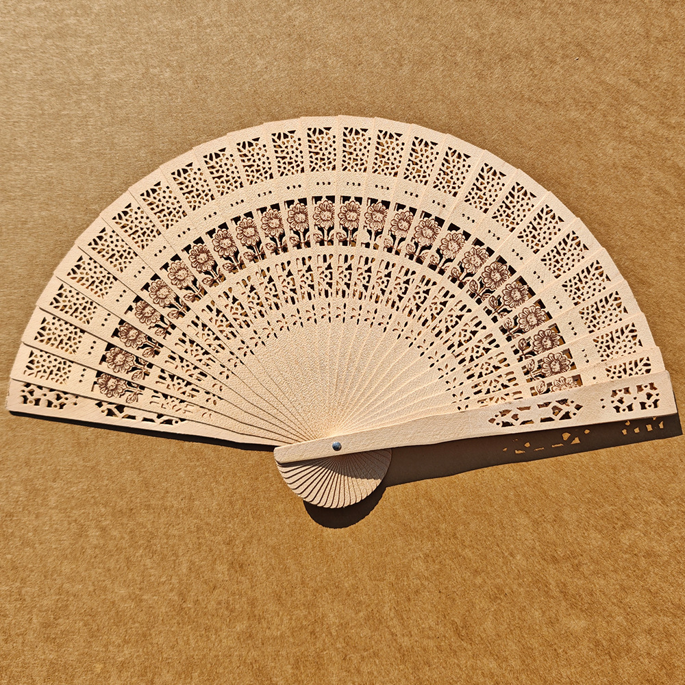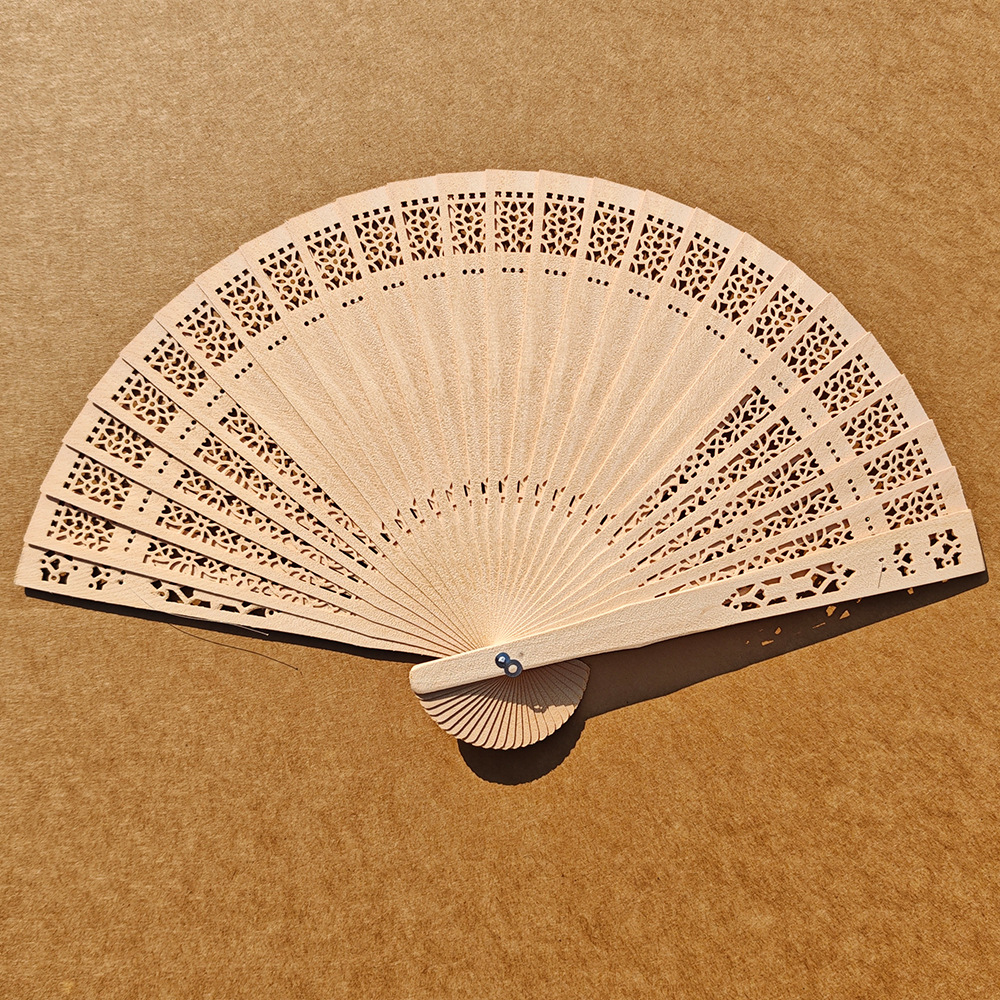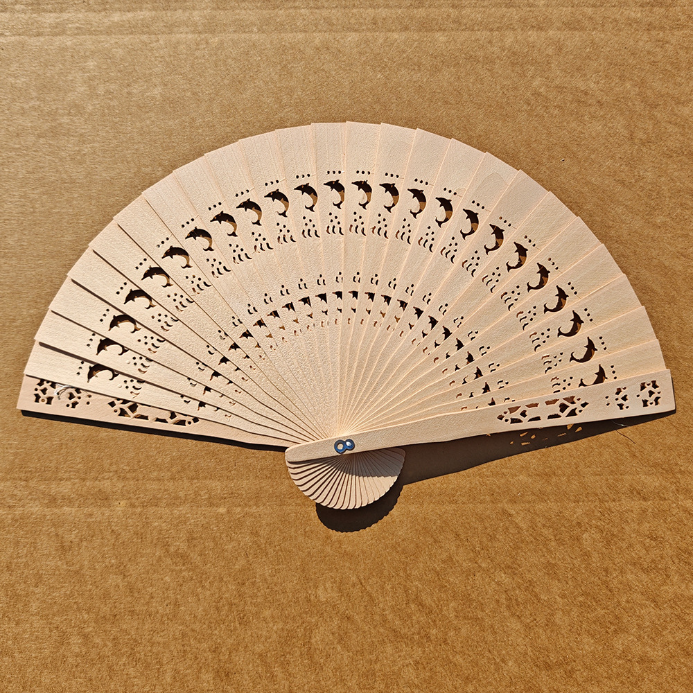 8 pulgadas en stock, ventilador de madera de perfume completo, delfines, lunas y estrellas, panal de abeja, ventilador de madera hueco, ventilador de regalo de boda