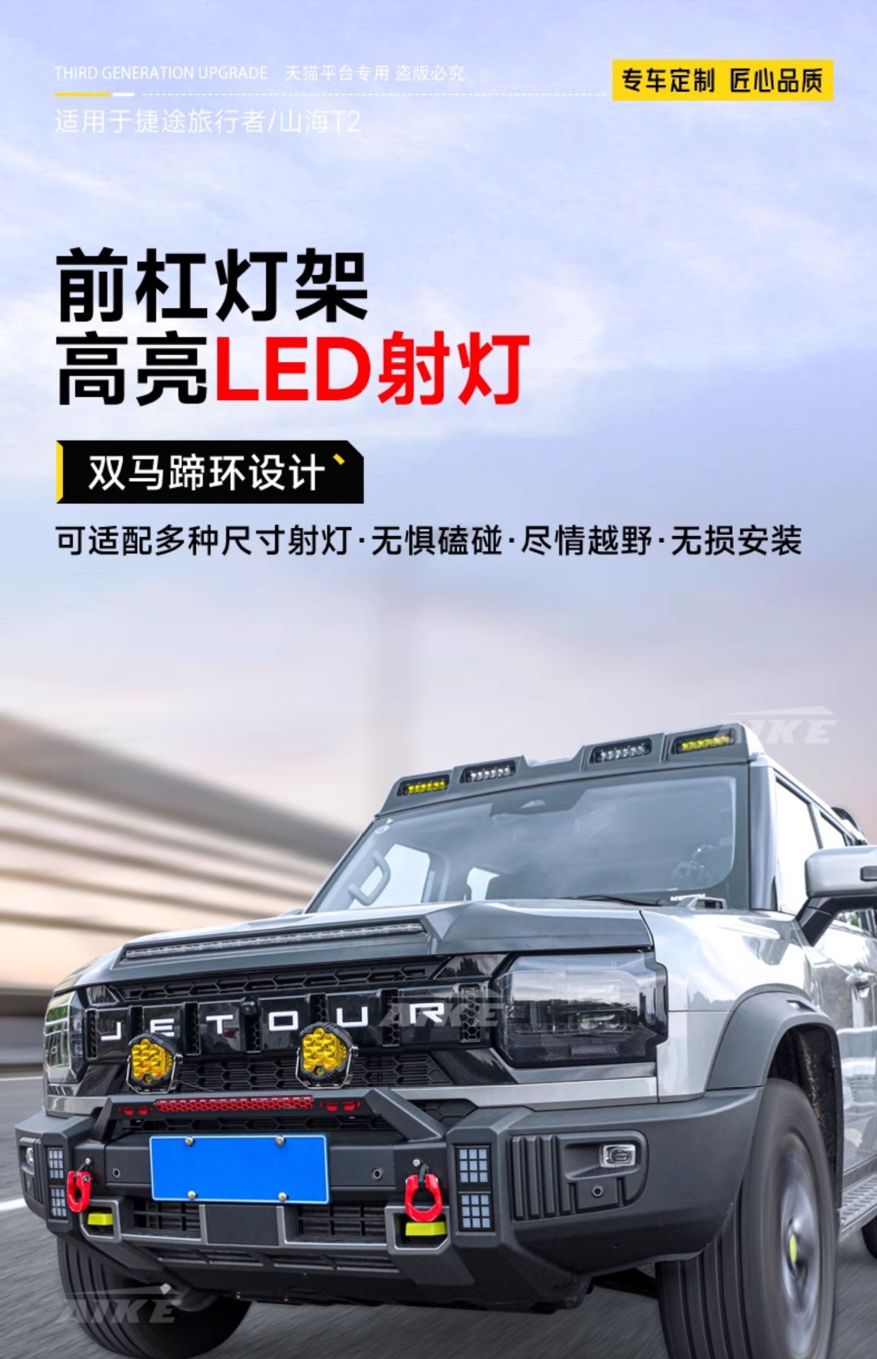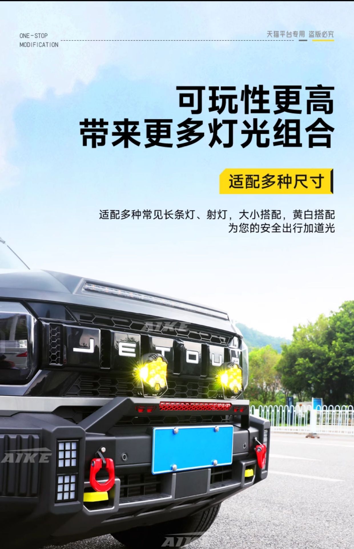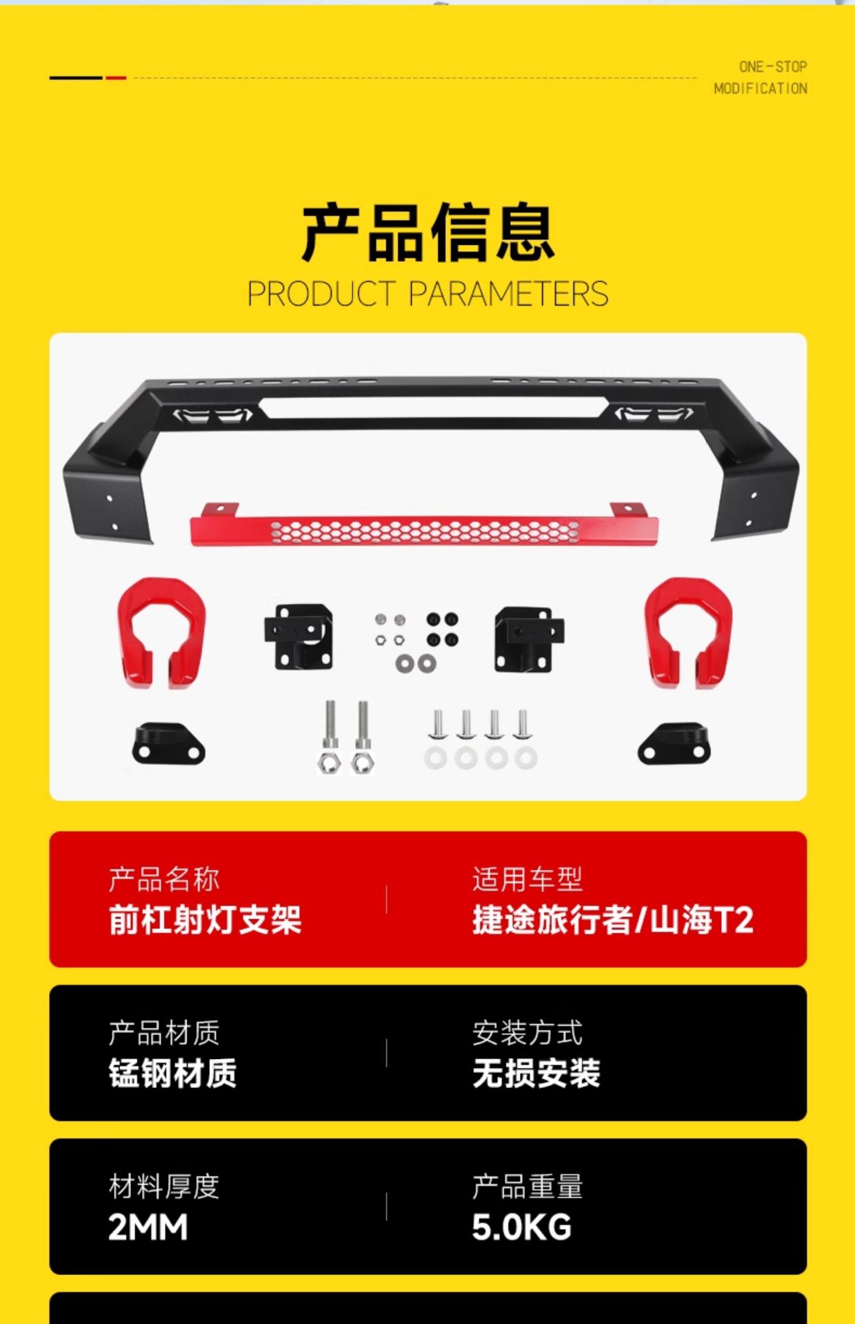Aplicable a Jitu Traveler delantero barra de luz de soporte de luces de buey para la modificación de montaña y mar T2 parachoques foco de luz de soporte accesorios