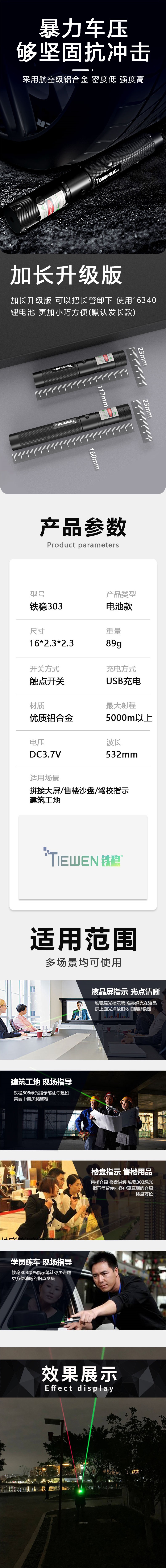 303 puntero láser de alta potencia sitio de construcción especial linterna al aire libre bolígrafo USB de carga luz intensa enseñar