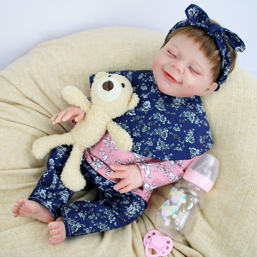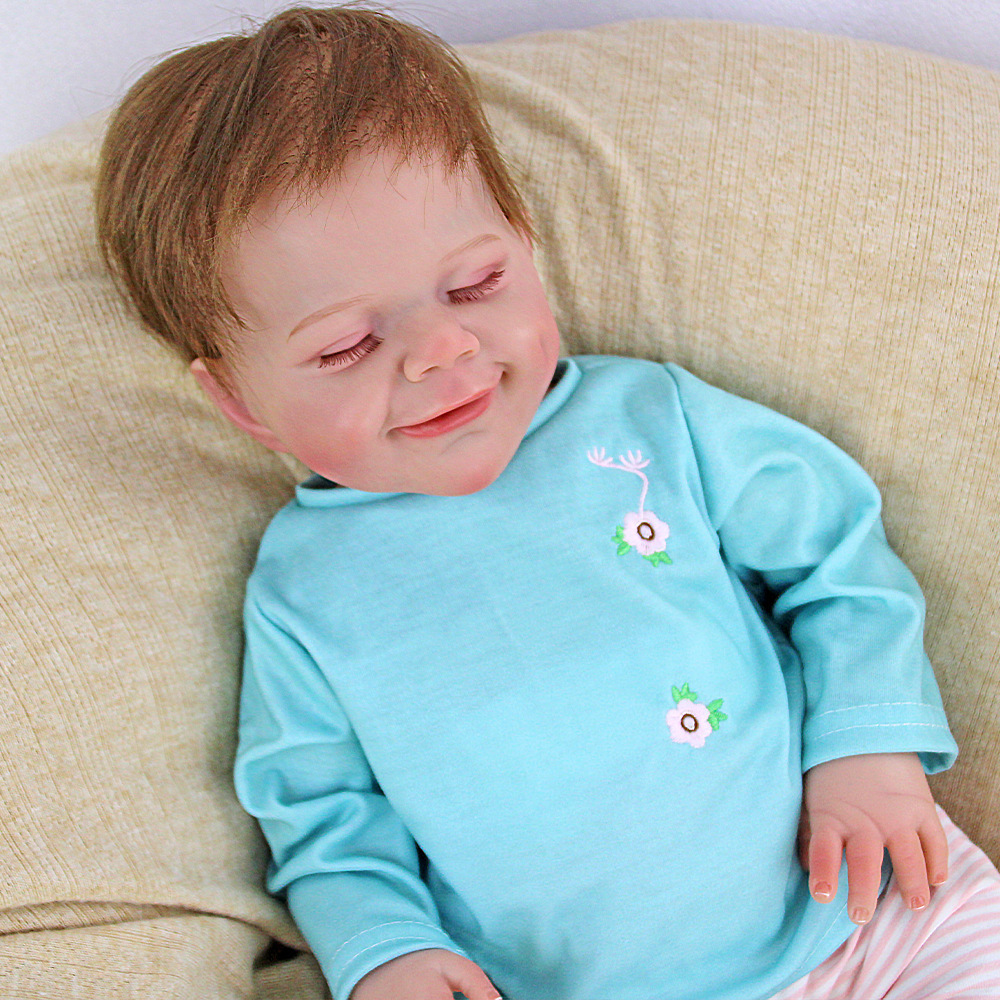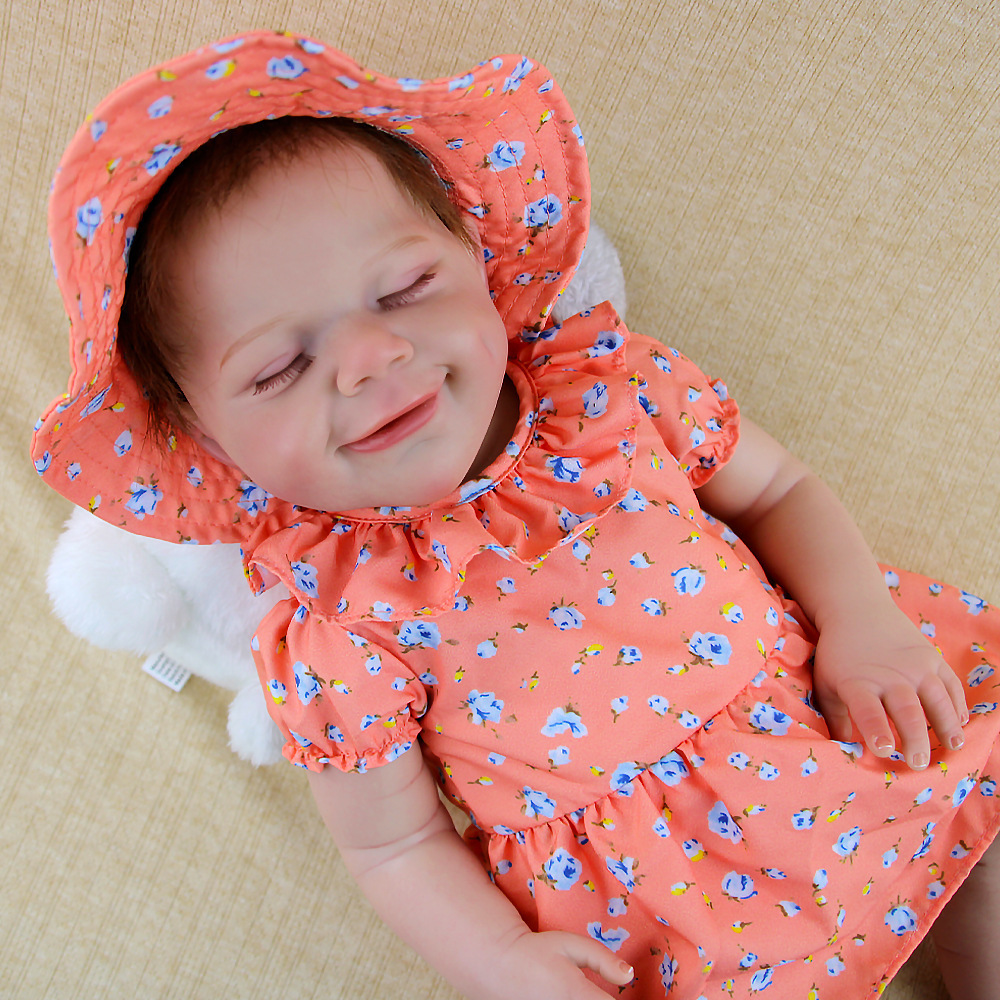 Muñeca de renacimiento juguete suave 18 pulgadas para acompañar muñeca de simulación de bebé cuerpo sonriente implante de cabello para niños