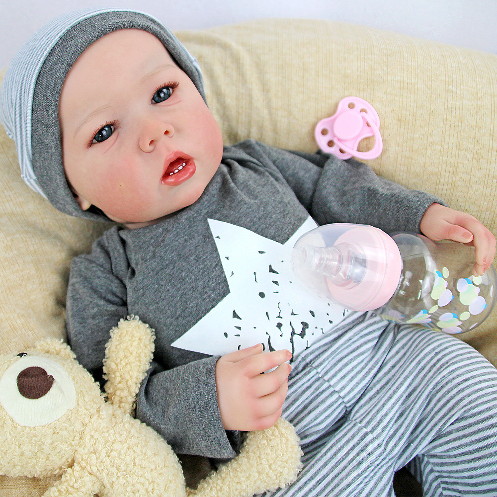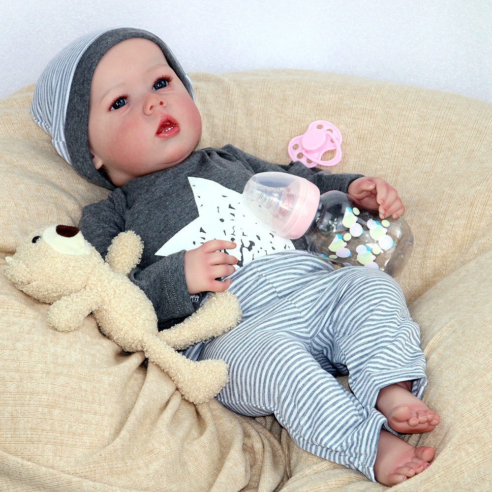 Muñeca renacida realista 55cm muñeca renacida pura hecha a mano todo el cuerpo suave Liam pintado renacido imitación de bebé