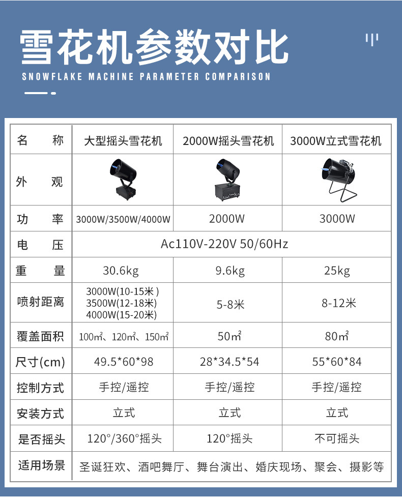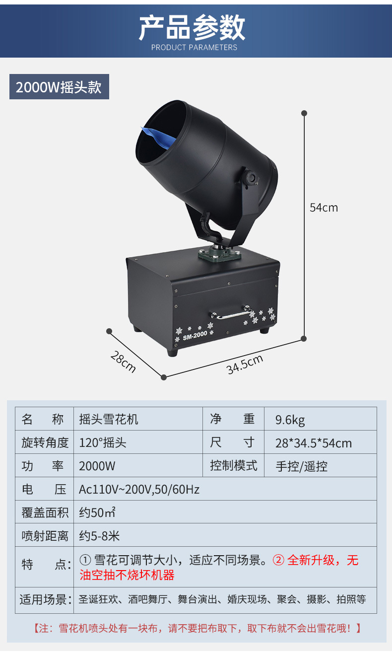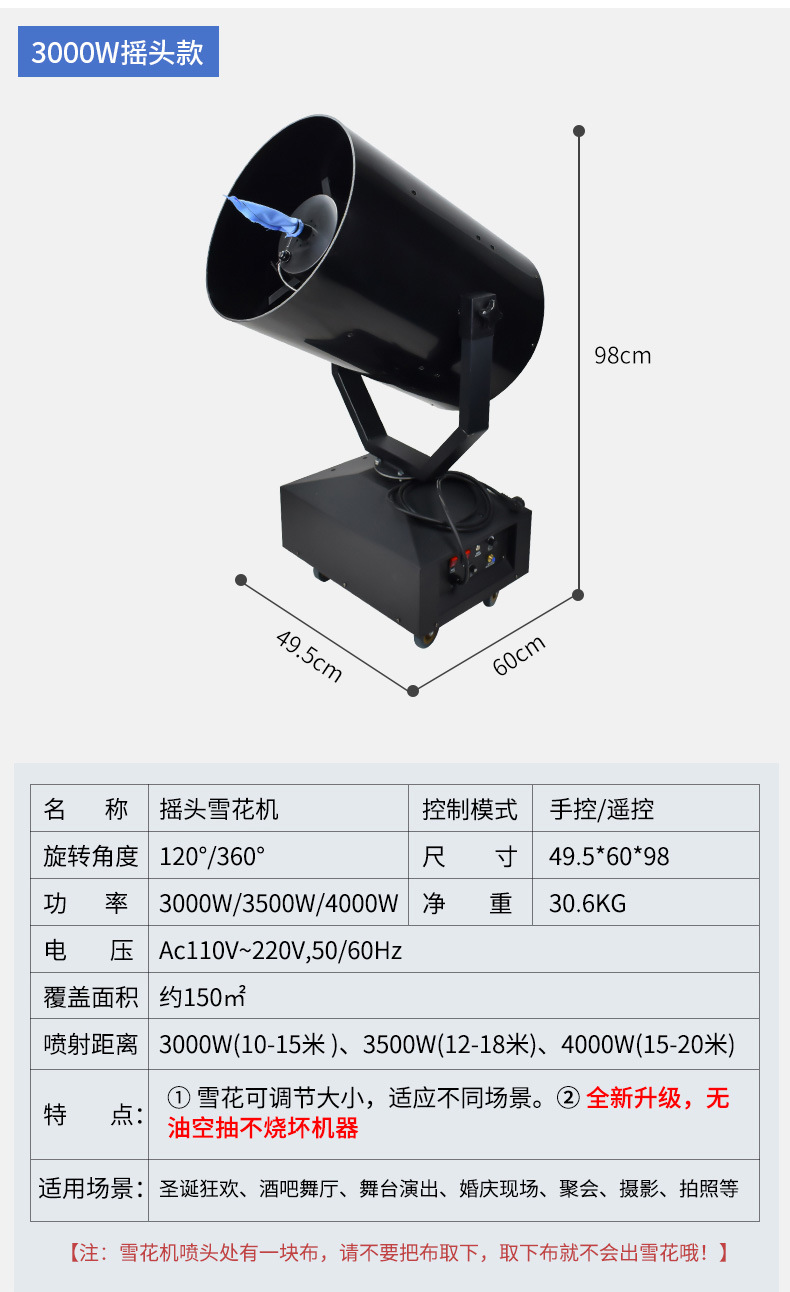 Máquina de copo de nieve 3000W gran temblor cabeza copo de nieve máquina etapa fabricante de nieve de alta potencia máquina de nieve de Navidad pulverizador de nieve